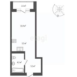 Id 61158. ЛУЧИПервый корпус, второй подъезд - лучший вариант во всем ЖК:-самый близкий корпус к метро - 8-9 минут пешком-меньше всего квартир на этаже (7 штук, против 12-18 в других корпусах)-лучший вид из окна-солнечная сторона-два окна в студии - можно сделать зонирование пространства или выделить небольшое отдельное помещение-большой санузел 3.9 метра - позволяет разместить полноценную ванну