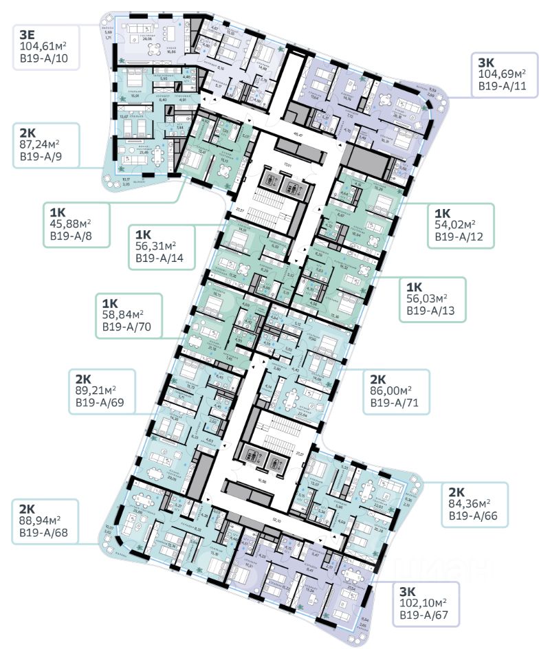 114 м² · Этаж 9 из 19