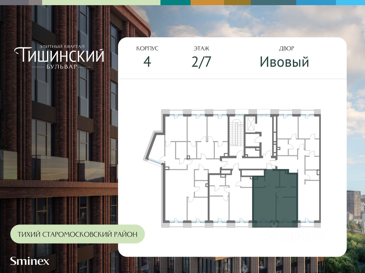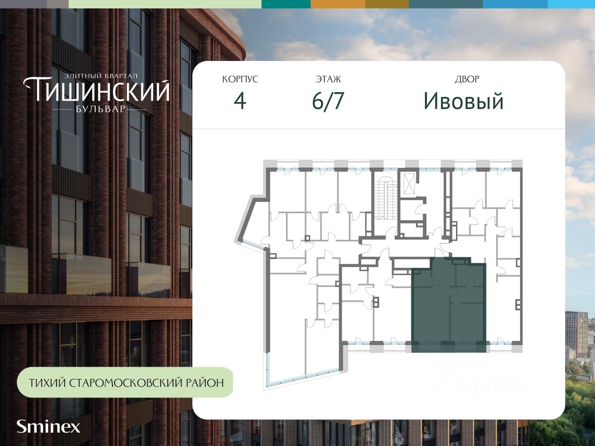 В продаже 1-комнатная квартира квартира в элитном квартале ''Тишинский бульвар''. Общая площадь квартиры - 55.60 кв.м. Этаж 6 из 7. Корпус Ивовый 4. ''Тишинский бульвар'' - тихий зелёный элитный квартал на Тишинке, в престижном и комфортном районе центра Москвы. В нём создан уникальный для элитного дома прогулочный бульвар в своём огромном парке 1,9 га. В парке оборудованы зоны для активного и тихого отдыха, крытые галереи, приватные зелёные комнаты, многофункциональная спортивная площадка, воркаут-зона, детская площадка, сухой фонтан, ручей. В пешей доступности Римско-католический кафедральный собор. Всего в полутора километрах от квартала находятся Патриаршие пруды - излюбленное место для летних прогулок, воскресных бранчей и романтических ужинов. Белая площадь расположена ещё ближе - на расстоянии 1,2 километра. Это точка концентрации деловой жизни и модных ресторанов. В ''Тишинский бульваре'' только для жителей и их гостей создан уникальный для элитного дома прогулочный бульвар в собственном огромном парке площадью 2,1 га, который занимает 70% территории квартала. Бульвар проходит через весь квартал и объединяет в общее пространство три двора: Кленовый, Рябиновый и Ивовый. В парке созданы крытые галереи и приватные зелёные комнаты для отдыха и медитаций в любую погоду. Насыщенное озеленение многолетними растениями с разными периодами цветения сохраняет территорию квартала красивой круглый год. В квартале насыщенная инфраструктура только для жителей, включая Clubhouse. Здесь оборудованы пространства для здорового образа жизни по стандарту FIT LAB: в парке - многофункциональная спортивная площадка, воркаут-зона, место для занятий йогой и медитации, бесплатный фитнес-клуб с бассейном. Для маленьких жителей доступны детская площадка и игровая комната по стандарту KIDS LAB. Дома оснащены самыми полными и лучшими системами.