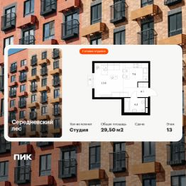 Продаётся квартира-студия площадью 29,1 кв.м на 10 этаже 16 этажного дома (Корпус 2.1.1, Секция 1) проекта ПИК Середневский лес. Светлый просторный подъезд на уровне земли, функциональная планировка, большие окна, c отделкой. В 10 минутах на автомобиле находится станция метро ''Внуково'', а в 15 минутах — станции ''Филатов Луг'' и ''Саларьево''. От них до центра Москвы всего 3540 минут. На рейсовом автобусе от жилого квартала до метро ''Филатов Луг'' — 20 минут. На территории ''Середневского леса'' появилось общественное пространство с игровыми площадками, местами для отдыха, пешеходными маршрутами и велопарковкой — для прогулок, отдыха и встреч жителей квартала. Также внутри жилого квартала уже открыта школа на 1100 мест и детский сад для 325 малышей. В дальнейшем откроется ещё один сад для 340 детей. Артикул 1037639 (Застройщик ООО ''Специализированный застройщик Середнево'')