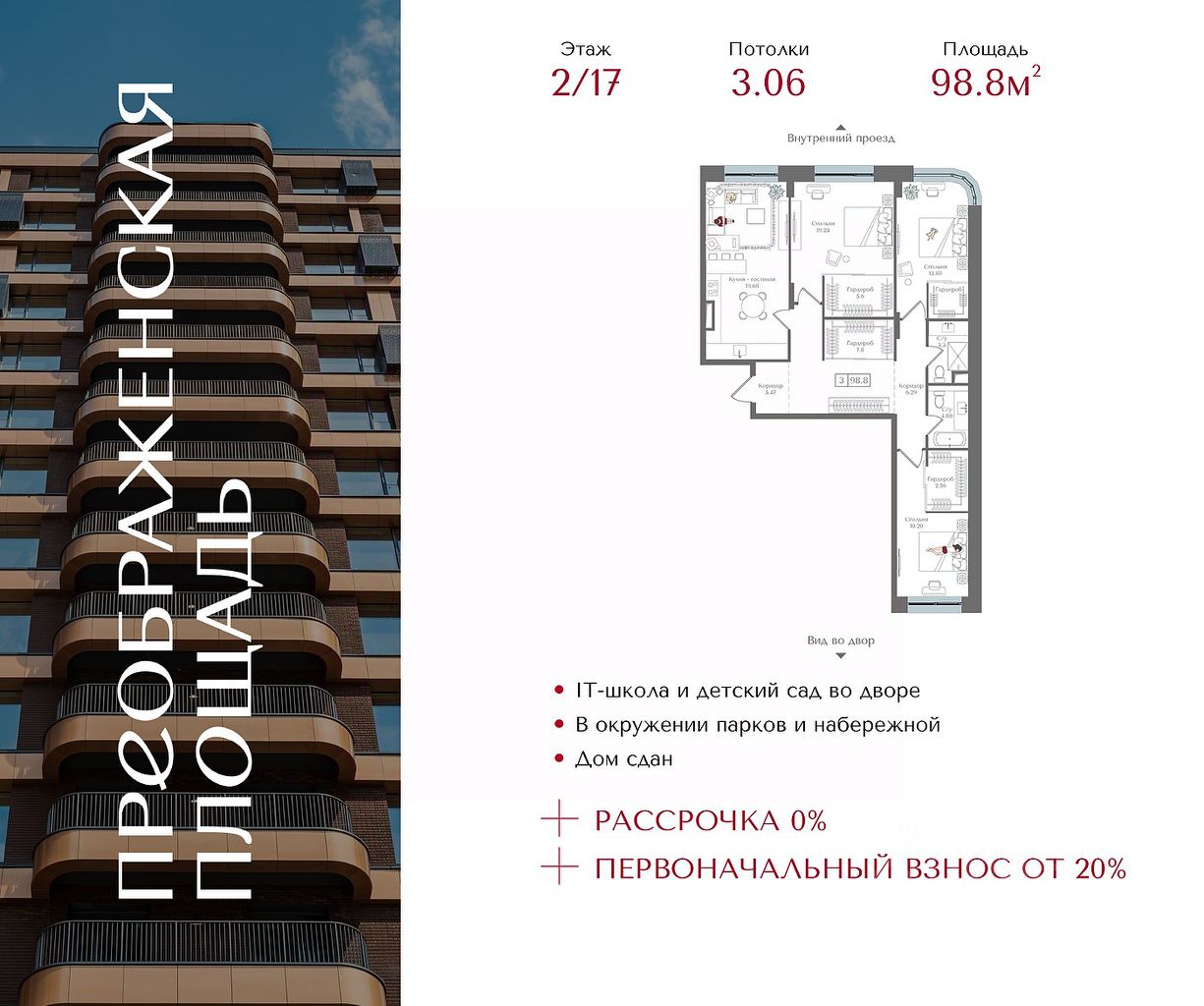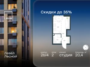 Цена указана с учётом скидки при 100%-й оплате, несубсидированной ипотеке, рассрочке (кроме программы ''Рассрочка 0%'').В районе, утопающем в густой зелени лесов, многочисленных парков и скверов, продаётся студия площадью 20.40 кв.м с отделкой white box. Квартира расположена на 2 этаже в жилом комплексе комфорт-класса Левел Лесной (компания Level Group/Левел групп). Жилой квартал Левел Лесной расположен в посёлке Отрадное Красногорского района Московской области. Это уникальный природный уголок вблизи района Митино. Посёлок окружён обширными лесными массивами. Обилие зелени создаёт благоприятный экологический фон и превращает этот район в оазис спокойствия и единения с природой.Расположение и инфраструктура:- Район окружен роскошной зеленью лесов и парковых зон, занимающих территорию свыше 1 000 гектаров, среди них лесопарк внутри жилого комплекса, загородный парк ''Отрада'', Митинский лесопарк, набережная реки Синички.- Идеальные условия для активного отдыха в любое время года: пешие и велопрогулки, бег, зимой - лыжи и катание на ватрушках.- На территории ЖК - частная школа ''Светлые Горы'', входящая в топ лучших школ Москвы и Подмосковья (Forbes Education, 2023), и детский сад, в пешей доступности расположены 9 детских садов.- На территории жилого комплекса - сетевые супермаркеты, локальные магазины, аптеки, салоны красоты, рестораны и другие объекты инфраструктуры в сданных корпусах. В 12 мин. пешком - крупный торговый парк ''Отрада'' с гипермаркетами, кинотеатром и детскими развлечениями.Отличная транспортная доступность:- 25 мин. пешком до станции метро ''Пятницкое шоссе'',- 28 мин. на автобусе до станции метро и МЦД-2 ''Волоколамская'',- 11 мин. на авто до МКАД,- 25 мин. на авто до ТТК.Продуманный архитектурный проект:- Концепция проекта Левел Лесной разработана бюро СПИЧ,- Высотность комплекса до 15 этажей с уникальными видами на лесные массивы и город,- Высота потолков до 3 м,- Современные окна высотой до 1,6 м, в части квартир предусмотрены окна в пол. Высота подоконников 0,6 м.Благоустройство:Продуманное пространство и аура приватного европейского городка рождают чувство лёгкости и расслабления у каждого, кто попадает на территорию проекта. Концепцию общественных площадок разработали в партнёрстве два архитектурных бюро: Highlight Architecture и SCAPE. В безопасных дворах без машин каждый обязательно найдёт себе место для вдохновения, отдыха и спорта.
