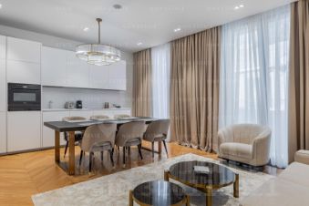 Предлагаются к продаже стильные 3-комнатные апартаменты в жилом комплексе Б,Дмитровка IX в камерном особняке Свет, где гармонично сочетаются историческая архитектура и современный комфорт. Грамотное зонирование пространства: большая гостиная, объединенная с кухней-столовой, мастер-спальня с собственной гардеробной и санузлом, вторая спальня с санузлом, в прихожей расположена вместительная гардеробная и гостевой санузел. Выполнен дизайнерский ремонт с использованием премиальных материалов, мебель и техника от ведущих европейских брендов установлена по принципу ''под ключ'': можно заезжать и жить без дополнительных вложений. Большая Дмитровка IX - проект реставрации объекта культурного наследия и новое строительство двух особняков. Девелопер сохранил исторический фасад особняка История и воплотил тенденции современной архитектуры в особняках Свет и Порода, спрятанных за историческим особняком. На закрытой территории расположены камерные особняки с апартаментами, вертикальный лес и 3-уровневый подземный паркинг. Архитекторы проекта Цимайло, Ляшенко и партнеры совместили лоск исторической Москвы и новейшие технологии современности.Наша компания состоит в ассоциации агентств элитной недвижимости AREA Номер в базе: J27269