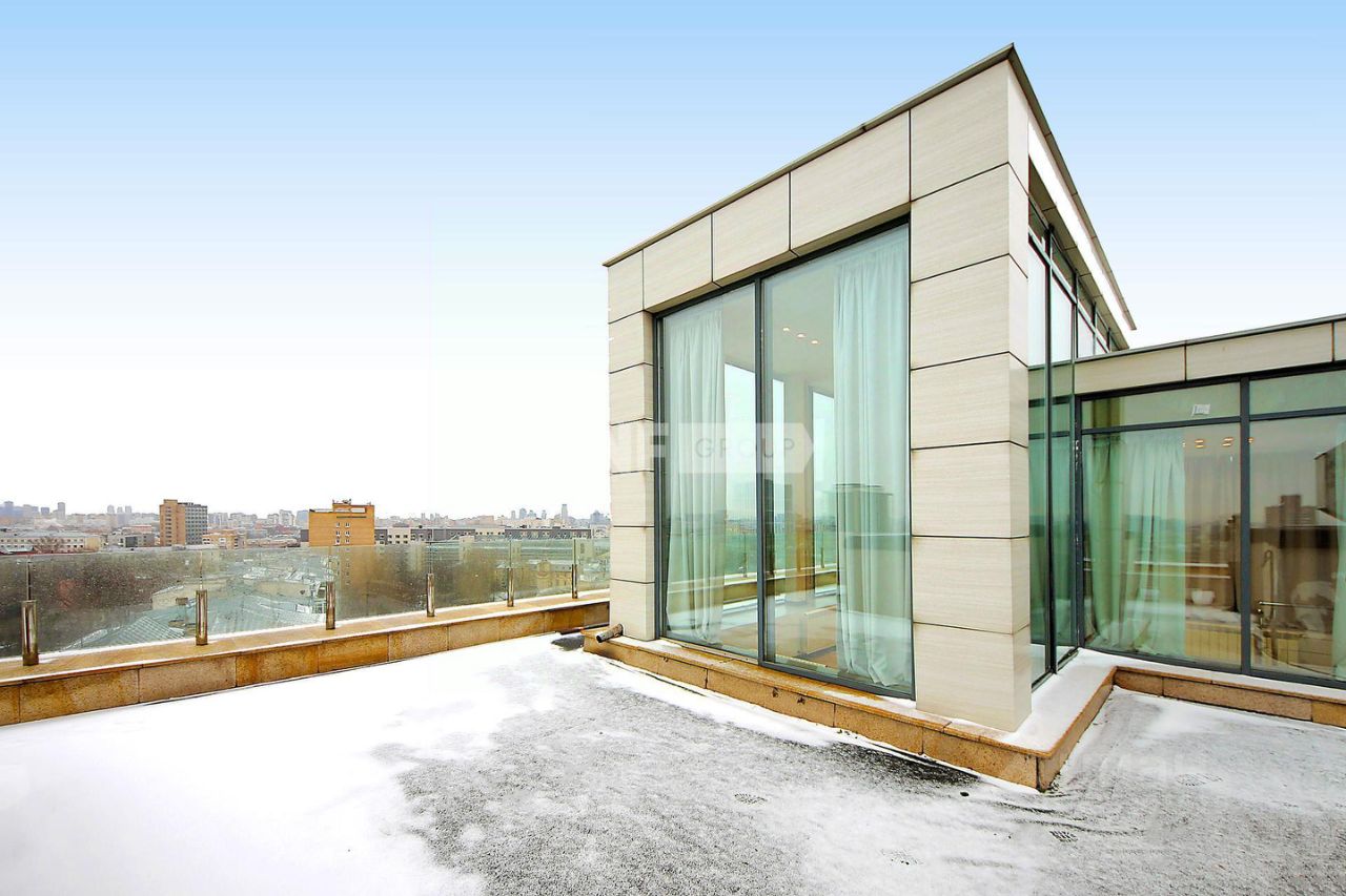 178376 ЖК Большая Никитская, 45 Пентхаус двухуровневый с террасой в клубном доме 2008 года постройки класса de luxe на Патриарших прудах. Собственный лифт на этаж! Полная реконструкция исторического особняка конца XIX века с великолепными входными группами и местами общего пользования, отделанными светлым мрамором. Пентхаус площадью 255,15 кв. м в состоянии White Box, с балконом площадью около 14 кв. м по периметру нижнего этажа и террасой на эксплуатируемой кровле площадью более 50 кв. м. Высота потолков: 3,30 м на первом уровне, переменная на втором — от 2,44 до 3,77 м. Дизайн-проектом предложен один из вариантов планировки: гостиная, кухня, столовая, кабинет, две спальни с ванными комнатами и третья мастер-спальня на втором уровне. Сервисная кухня при выходе на террасу. При желании возможно оборудование до 5 изолированных комнат (две спальни, кабинет, комната для йоги или занятий фитнесом). Также имеется возможность объединения с соседним двухэтажным пентхаусом. Отдельным лотом предлагаются к продаже 2 машино-места в подземном паркинге (стоимость, пожалуйста, уточняйте). Прямой представитель собственника.