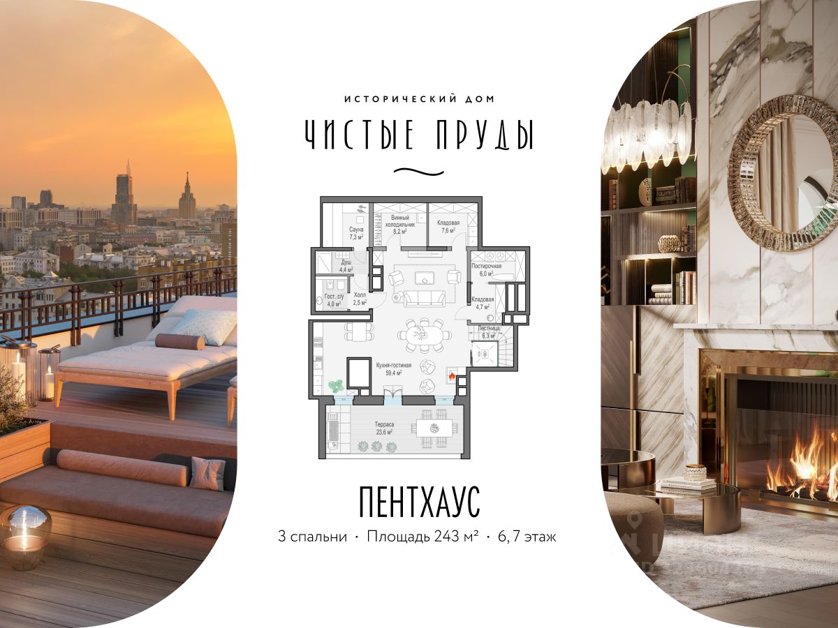 Роскошный двухэтажный пентхаус на две стороны света с собственной видовой террасой. В пентхаусе: • Шесть спален • Кухня-гостиная более 100 кв.м с камином • Собственная терраса • Потолки 3,57 м Фрунзенская набережная - один из самых желанных районов Москвы, на уровне Остоженки и Патриарших. Поблизости нет и не появится проектов элитного класса: набережная равномерно застроена и клубный квартал завершает формирование этой локации. Масштабная премиальная инфраструктура доступна только резидентам.В большом Clubhouse и на территории парка есть всё для насыщенной жизни вне квартиры: двухэтажный фитнес, многофункциональная спортивная площадка, клубная гостиная и самое большое в элитном классе детское игровое пространство. Клубный квартал ''Фрунзенская набережная'' - место для приватной и комфортной жизни в окружении людей со схожими ценностями. Здесь тихо, будто за городом: сталинская застройка и высокие сосны укрывают жителей от шума и посторонних глаз. Fine Development - это комплексный, вовлечённый и ответственный подход Sminex. Результат этого - совершенные дома и сервисы: восхищающие, удобные и красивые, с высочайшим уровнем заботы на всех этапах жизни с нами.