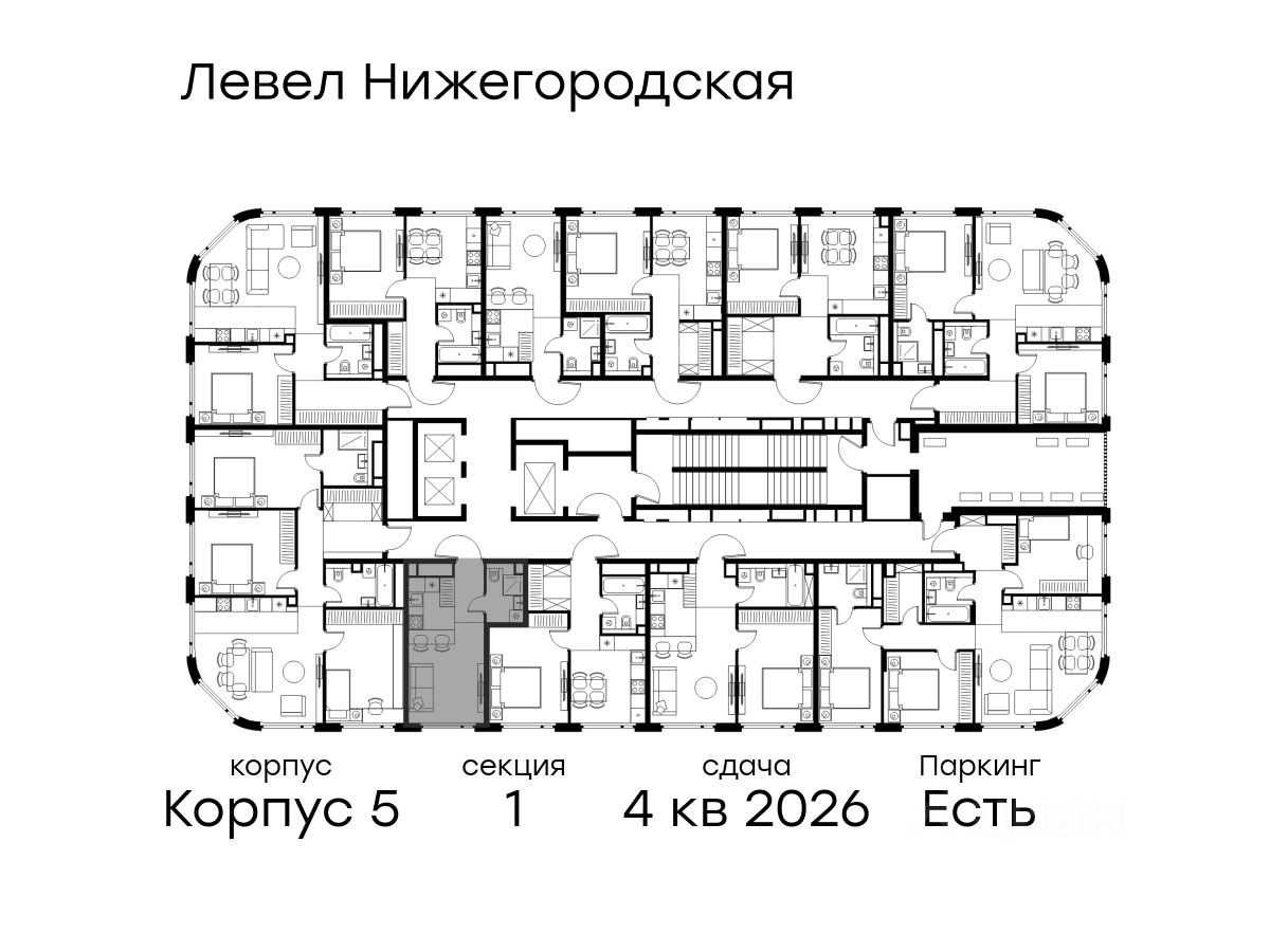1-к, Левел Нижегородская ЖК, 5