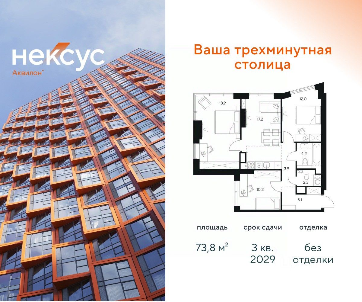 Продажа от застройщика. О проекте: В основе Несус Аквилон лежит принцип трехминутного города, где вся жизнь: работа, отдых, здоровье, общение и культура сосредоточены в шаговой доступности. Он не просто экономит время, а кардинально перераспределяет его. В этих условиях главным логистическим узлом становится лифт, который в считанные секунды переносит из квартиры в собственный фитнес-рум, панорамный двор или современный коворкинг. Здесь вы сами решаете: оказаться в эпицентре событий, чувствуя пульс мегаполиса, или наслаждаться тишиной и приватностью своего пространства. И главное — вы можете переключаться, находя идеальный баланс каждый день. Несус Аквилон - ваша трехминутная столица! Транспортная доступность Несус Аквилон дарит независимость от расстояний и логистики. Ваше время теперь принадлежит только вам меньше минуты до метро Молодежная 2 минуты до Рублевского шоссе 10 минут до Проспекта Багратиона 15 минут до Москва-Сити 10 минут до МКАД 20 минут до ТТК Архитектура 46-этажная башня станет новой архитектурной доминантой, символизирующей динамику и технологичность современной жизни.Комбинация алюминиевых кассет, стеклофибробетона и витражного остекления фасада создает монументальную оболочку, а теплая цветовая гамма добавляет масштабной форме визуальной теплоты. Три разных по характеру стороны башни — от строгой ''зубчатой'' геометрии до живописных эркеров — создают многогранный, ритмичный образ, дополняемый невесомыми балконами со стеклянным ограждением. Архитектура проекта живет в диалоге с городом: променад вдоль парящего стилобата со стрит-ретейлом становится естественным продолжением общественного пространства. Планировки в концепции Разумные метры Мы создали квартиры, где пространство работает на ваш комфорт. В основе концепции ''Разумные метры'' правильная геометрия помещений и тщательно продуманные эргономичные решения. - Высота потолков до 3,55 метров - Многообразие планировок: от студий до четырехкомнатных квартир классического и евро-формата - Многофункциональные пространства: кухни-гостиные для приема гостей и зонированные мастер-спальни - Продуманная инфраструктура быта: отдельные постирочные и гостевые санузлы - Удобные системы хранения: встроенные ниши и гардеробные зоны - Уникальные форматы: пентхаусы, комнаты с двумя окнами, угловое панорамное остекление - Возможность открытия окон на всех высотах Для студий и однокомнатных квартир мы предлагаем готовое решение — отделку White box, позволяющую сразу приступить к чистовому ремонту на ваш вкус. Для остальных планировок предусмотрена черновая отделка, чтобы воплотить все интерьерные пожелания. Здесь пространство адаптируется под ваш образ жизни, а не вы подстраиваетесь под планировку. Приватное благоустройство Скрытый на виду панорамный двор-терраса, расположенный на высоте 7 метров, объединил внутреннюю камерность и внешнюю динамику городской жизни. - Многоуровневое озеленение с всесезонными композициями, сохраняющими декоратив