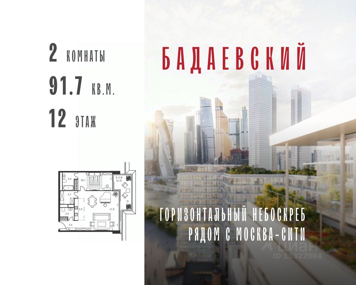 183 м² · Этаж 15 из 32