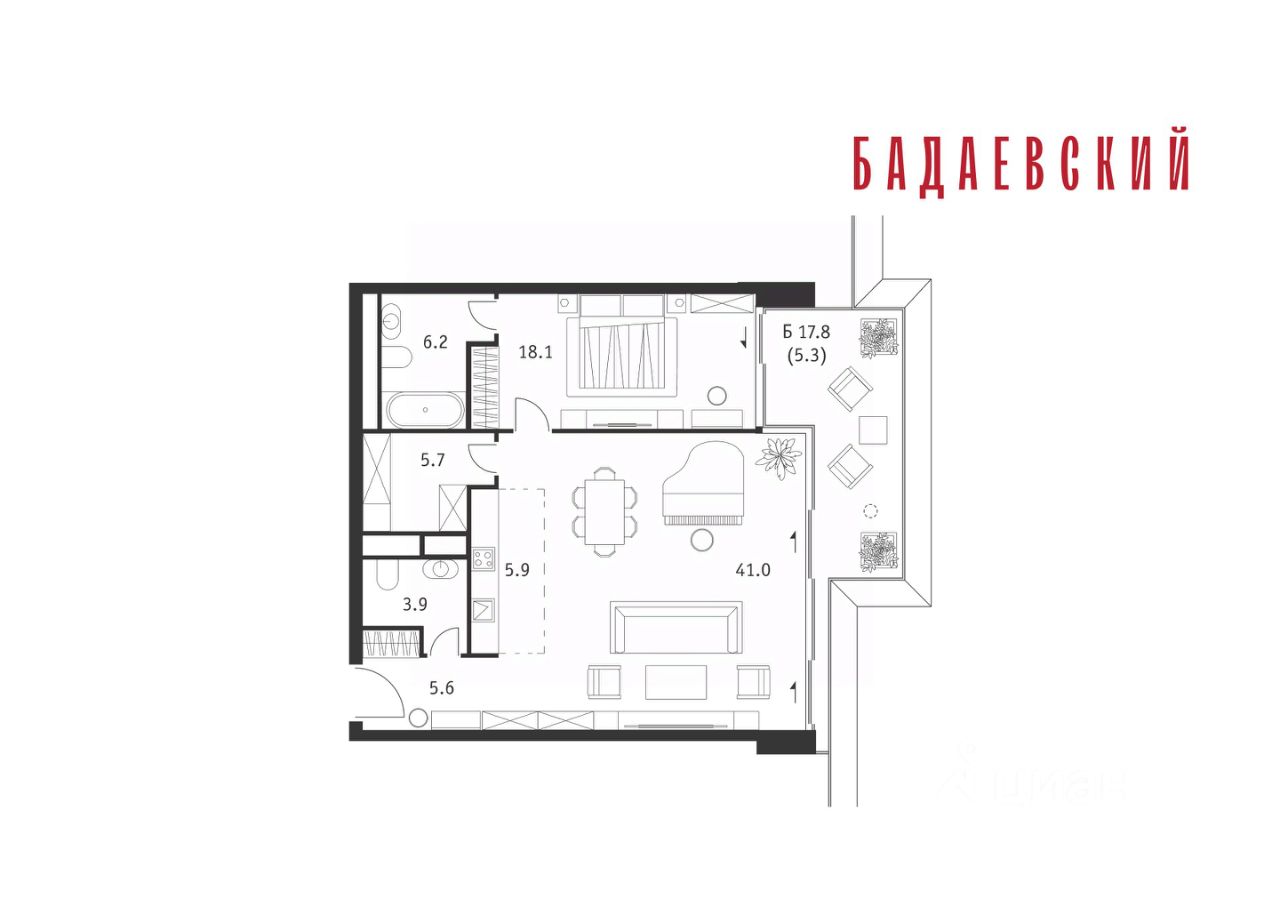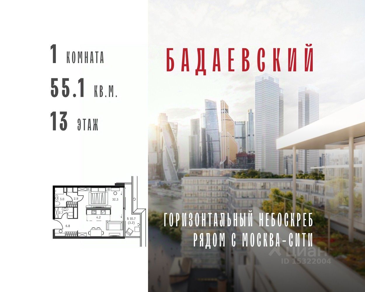 Продаётся 1-комнатная квартира общей площадью 55.10 м² на 13 этаже Жилого Комплекса Бадаевский. О нем говорили. Его ждали. Жилой комплекс ''Бадаевский'' на Кутузовском проспекте — это место для жизни, которое займет место в истории. Комплекс стал первым в истории московским проектом, победившим в категории Residential на World Architecture Festival. Девелопер Capital Group. В ''Бадаевском'' исторические здания завода и футуристические ''парящие'' дома создают единый комплекс, который станет новой достопримечательностью и символом Москвы. Панорамное остекление, террасы и веранды дарят неординарные и захватывающие виды. Благодаря расположению домов и панорамному остеклению, жилые пространства в ''Бадаевском'' будут наполнены светом. А виды из окон домов-''лент'' на Москву-реку, пивоваренный завод, небоскребы ''Москва-Сити'' и Белый дом дополнены принципиально новым ощущением высоты. На территории Бадаевского завода появится масштабный ландшафтный парк с концепцией ''русский лес''. Впервые в истории района Дорогомилово у жителей появится прямая связь набережной Тараса Шевченко с Кутузовским проспектом. Близость Москвы-реки добавляет к преимуществам ''Бадаевского'' природную энергетику и приятные прогулки на свежем воздухе. Подземная парковка позволит сделать территорию завода полностью пешеходной, а сам комплекс представит новый подход к организации открытого и уединенного пространства в центре Москвы. Расположение в начале Кутузовского проспекта делает проект не только престижным, но и удобным: до Третьего транспортного и Садового кольца можно доехать за 5 минут, а Кремль и основные исторические достопримечательности расположены в 15 минутах на автомобиле. Напротив ''Бадаевского'' находится офисный кластер ''Москва-Сити''. Для жителей комплекс будет создано не только новое масштабное благоустройство, но и вся необходимая инфраструктура. В исторических корпусах появятся магазины, бутики, кафе и рестораны, коворкинг и крафтовая пивоварня, а в зданиях элеваторов — русская баня. Кроме того, запланирован фермерский рынок и досуговый кластер с музыкальной студией, центром детского творчества и фитнес-центром с бассейном.
