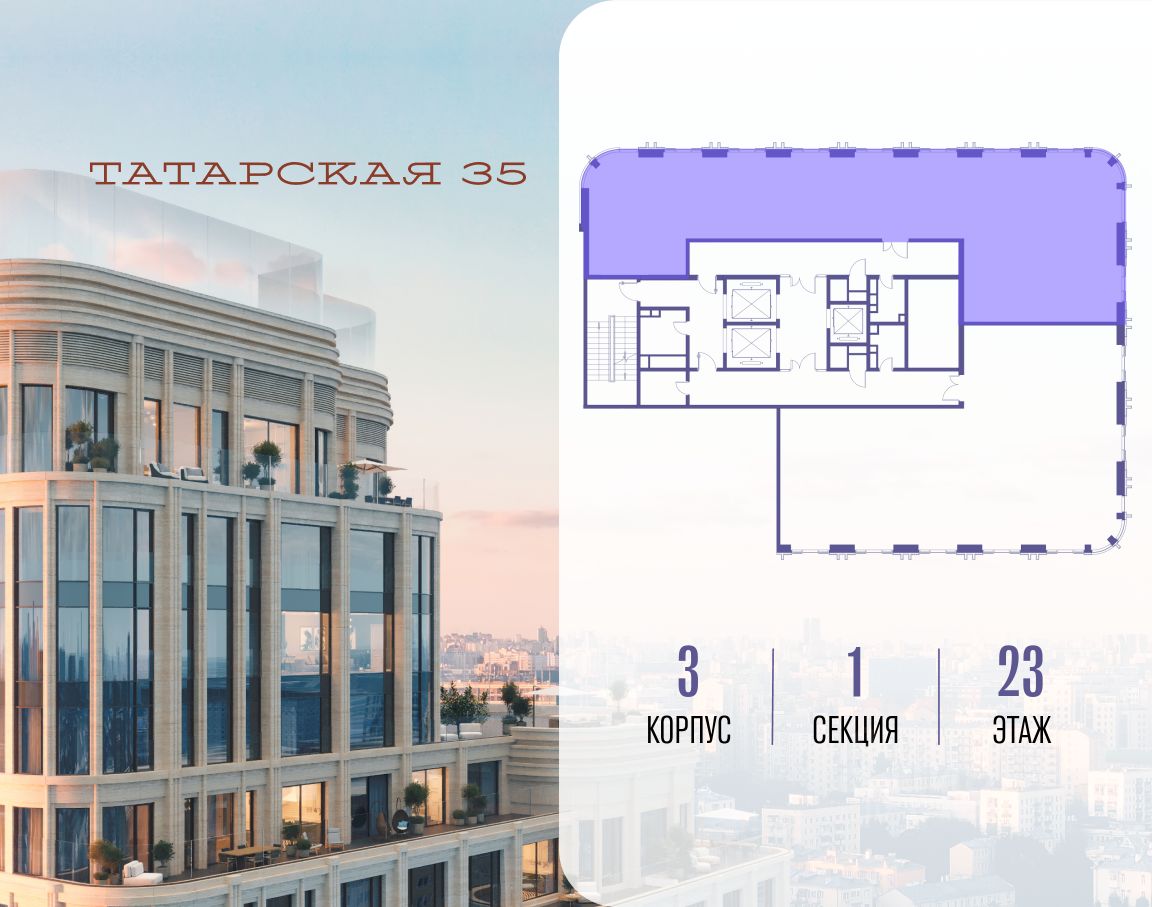 Продается просторная квартира площадью 181.50 м2 в жилом комплексе ТАТАРСКАЯ, 35. Квартира находится в 1 секции корпуса 3. Этаж 23-й из 24. Квартира без чистовой отделки, с просторной кухней 49.30 м2. Жилая площадь 63.80 м2. Высота потолка от 3.50. ТАТАРСКАЯ, 35 - новая архитектурная доминанта Замоскворечья, достопримечательность на фотопанорамах исторического центра Москвы. Элитный дом, созданный для тех, кто умеет смотреть далеко вперед, мыслить масштабно и воплощать собственный сценарий жизни. Вдохновляющие прогулки по променаду набережной, в уютных переулках, в парке ''Зарядье'', в Михайловском саду и Репинском сквере. Наслаждение высоким искусством в Третьяковской галерее, Доме Музыки, театральном музее им. А.А. Бахрушина, театре на Малой Ордынке. За окнами - Кремль, высотка на Котельнической, панорамы Замоскворечья и острова Балчуг, огни Садового кольца. Собственные спорт-румы, детская, репетиторская, бьюти-пространства, деловое пространство с коворкингом, переговорной и сигарной. Собственный трехуровневый фитнесс-центр с бассейном, тренажерным залом, сауной, хаммамом, массажным кабинетом. Площадь двора - 1,8 га, половина территории покрыта деревьями, кустарниками и лужайками. Дом расположен внутри Садового кольца - отсюда в считанные минуты можно добраться до важнейших мест столицы: достопримечательностей и парков, театров и ресторанов, деловых и административных центров. 7 минут до Кремля на автомобиле, 15 минут до Третьяковской галереи и 8 минут до Садового кольца пешком. Планировочные решения и визуализации предварительны, возможны изменения.