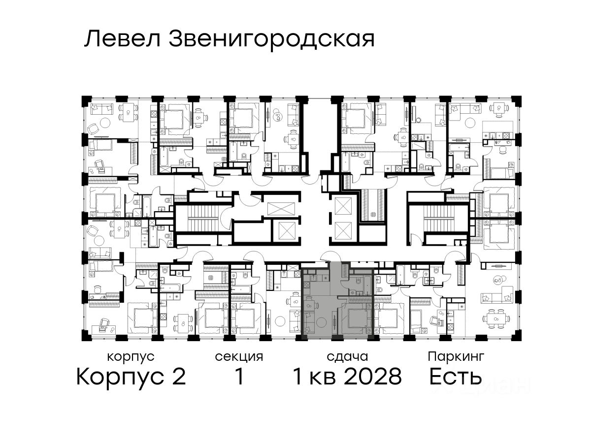 Цена указана с учётом скидки при 100%-й оплате, несубсидированной ипотеке, рассрочке (кроме программы ''Рассрочка 0%''). В жилом квартале продаётся студия площадью 18.50 кв.м без отделки. Квартира расположена на 27 этаже 64 этажного корпуса 2 в жилом комплексе комфорт класса Левел Звенигородская (компания Level Group/Левел групп). Отличная транспортная доступность - 5 мин. пешком до метро ''Звенигородская'' (откроется к окончанию строительства), - 18 мин. пешком до станции МЦК ''Хорошёво'' и станции БКЛ ''Народное ополчение'', - 4 мин. на авто до ТТК, - 8 мин. на авто до Садового кольца, - 15 мин. на авто до Кремля. Продуманный архитектурный проект - Концепция от студии Станислава Михаловского, в основу которой легло единение природы и города, - Двухкамерные стеклопакеты в окнах, алюминиевый и ПВХ профиль - в квартирах тепло зимой и прохладно летом, - С верхних этажей откроются панорамные виды на город, Москву-реку, ''Москва-Сити'' и Москворецкий парк, - Лобби со всеми удобствами: окна в пол, высокие потолки до 4,7 м, лаунж-зоны, колясочные, гостевые санузлы и мойки для лап животных, - Централизованные водонагреватели гарантируют круглогодичную подачу горячей воды в каждую квартиру. Благоустройство Концепция благоустройства разработана совместно с бюро UNK landscape. Высота башен приближается к 200 метрам - они словно касаются неба. Небесный простор проецируется на территорию двора с помощью подсветки, визуально увеличивая пространство и отражаясь в авторских элементах архитектуры. На территории площадью 0,45 га расположатся: - ''Облако событий'' - место встреч и общения, - ''Облако спорта'' - всё для поддержания себя в форме, - ''Облако принятия решений'' - пространство для работы на свежем воздухе, - ''Облако спокойствия'' - для отдыха в тишине природы, - ''Облако игр'' - площадки для подростков и самых маленьких. Инфраструктура В жилом комплексе откроется 21 коммерческое помещение: продуктовые лавки, кафе, салоны красоты, службы доставки и творческие студии. Этап 1 включает строительство двухуровневого подземного паркинга. Всего здесь расположится 351 машино-место, включая семейные места, и 264 кладовых помещения. В распоряжении жителей развитая инфраструктура района: 15 супермаркетов, 5 спортивных объектов, 9 медучреждений, 7 детских садов, 4 школы, 3 благоустроенных парка - всё в шаговой доступности. Инженерия Комфортное перемещение внутри домов будут обеспечивать надёжные лифты с доступом в паркинг с жилых этажей. В каждом корпусе предусмотрено до шести кабин, включая сервисные лифты. Попасть на территорию комплекса можно только по единому ключу доступа. Видеонаблюдение установлено на входах в подъезды, в лобби, в общих зонах, на въезде в паркинг. Гости смогут связаться с жителями дома через входные видеопанели, а управлять доступом на территорию можно через видеодомофон или приложение на телефоне.