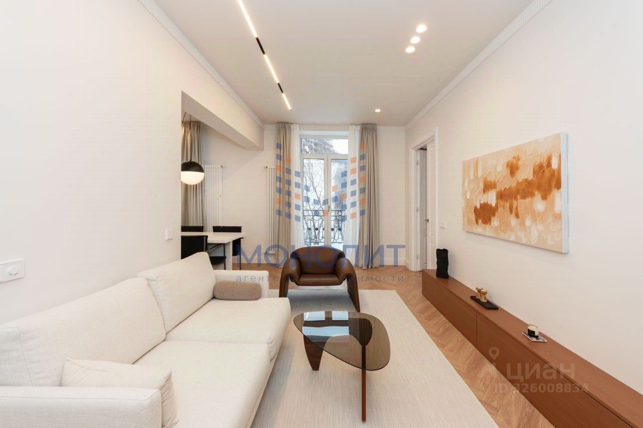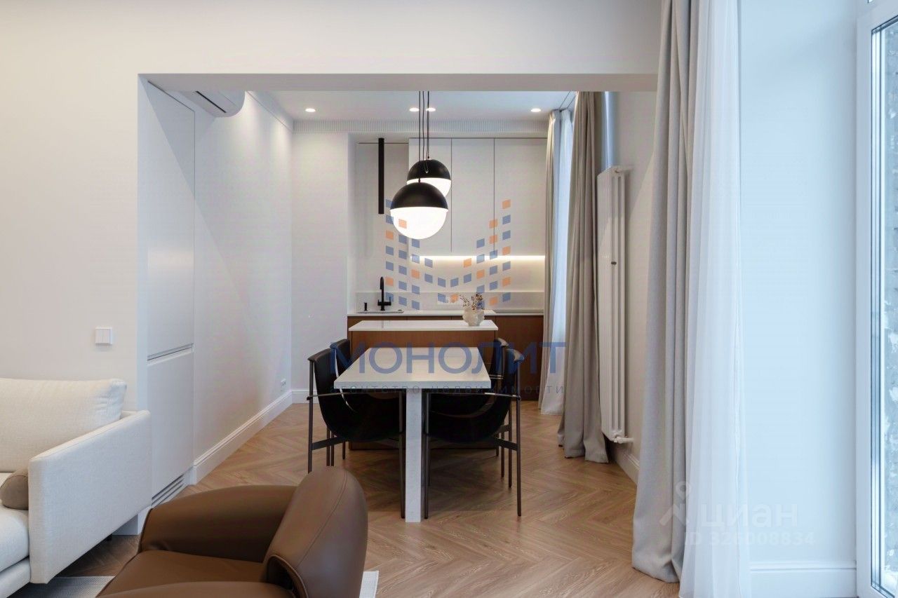 Двухуровневая квартира с террасой в клубном доме делюкс-класса ''Бакст'' на Патриарших прудах. Квартира без отделки расположена на четвёртом и пятом этажах с видами на город. Свободная планировка позволяет организовать просторную гостиную с кухней 65 м2, , четыре спальни, каждая по 15 м2, и три санузла. Гостиная со вторым светом и высокими окнами от пола до потолка, большое количество естественного света. Высота потолка достигает 7,1 метра. Виды на город. На первом уровне спланирован выход на собственную открытую террасу. Один собственник. Полная стоимость в договоре, без залога. Главное о доме. ''Бакст'' — клубный дом делюкс-класса в Большом Козихинском переулке, названный в честь художника Льва Бакста. Его картины легли в основу декоративных панно на фасаде. Дом состоит из двух секций на 4 и 7 этажей, всего 18 квартир. Встречаются форматы со вторым светом, каминами, террасами и пентхаусами с двухуровневыми планировками. Панорамные окна и французские балконы с коваными решётками впускают много света, а внутренний двор с уличной мебелью и ландшафтным дизайном создаёт камерную атмосферу. Входные группы оформлены бронзой и камнем, подземный паркинг связан с корпусами лифтами. Главное о локации. Дом расположен всего в 450 метрах от Садового кольца и в десяти минутах пешком от Тверской. Два квартала — и вы уже на Патриарших прудах, где утро начинается с пробежки по бульвару или завтрака в ''Кофемании''. Вечером можно заглянуть в ресторан ''Severyane'' или ''Ugolek'' на Малом Козихинском, а для культурных встреч выбрать Московский театр мюзикла или залы Консерватории. Для семей удобны гимназия 1529 и школа 1231 с углублённым изучением языков. Магазины и сервисы на Тверской закрывают бытовые вопросы, а до Кремля можно дойти за двадцать минут. Комментарий эксперта. Меня зовут Алексей Кригер — брокер компании Whitewill. Я отвечаю за продажу этого лота. Свяжитесь со мной, чтобы получить расширенную презентацию, больше фотографий или договориться о просмотре. Могу провести экскурсию по локации и познакомить вас с этим домом. ID 295 743.