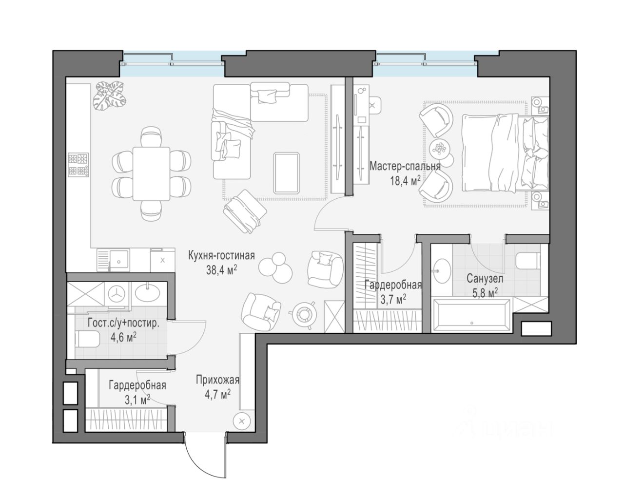 38 м² · Этаж 19 из 34