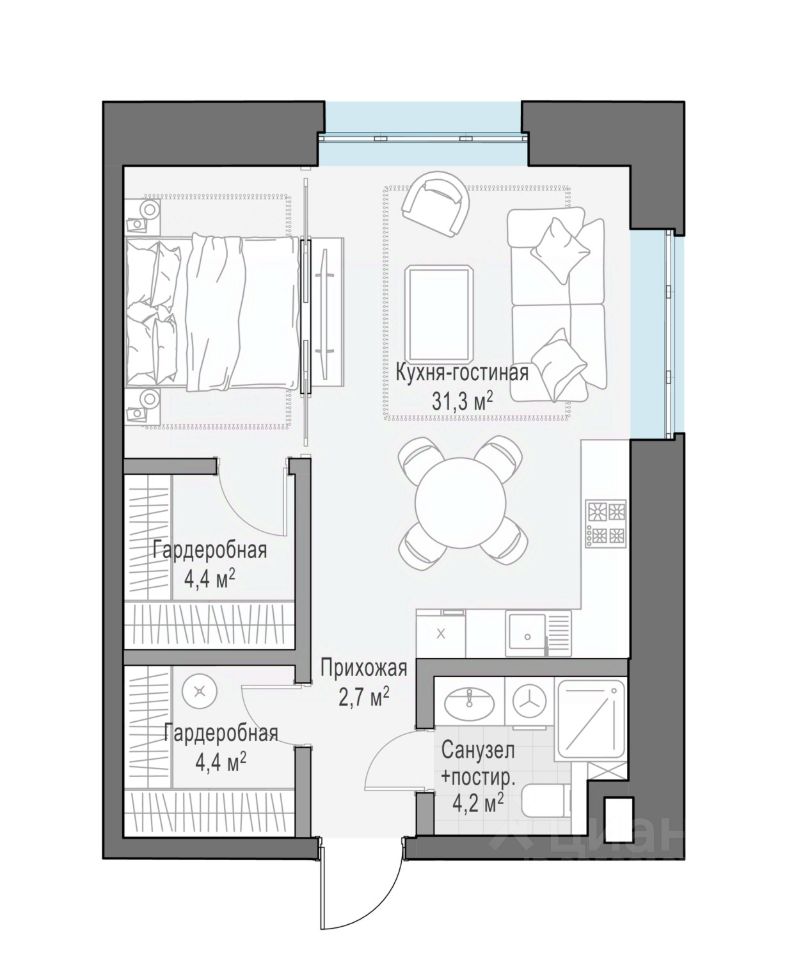 31 м² · Этаж 19 из 34