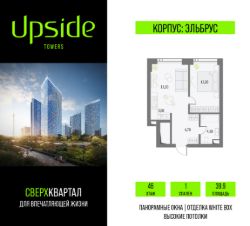 Продаётся 1-комнатная квартира площадью 39.7 кв.м на 46 этаже 55 этажного корпуса Эльбрус в квартале небоскребов ''Upside Towers''. В квартире отделка White-box, c видом на 2 очередь, прогулочный бульвар, парк Сокольники. Номер квартиры А4613.Upside Towers - технологичный квартал строится в динамично развивающемся Бутырском районе, в 3 мин. от метро, в 5 мин. от ТТК. На территории 7 га возводится 5 высотных башен от 19 до 58 этажей, названных в честь главных вершин земли. Квартиры с панорамными окнами в пол, высокими потолками и современными инженерными решениями. Благоустроенная зеленая территория включает: приватные дворы, природный комплекс, прогулочный бульвар, ландшафтный парк 2,5 га с сенсорным садом и многофункциональными игровыми и спортивными площадками. Большое внимание в проекте уделяется созданию социальной инфраструктуры. Более 2000 кв.м. отдано под Upside club закрытый клуб, уникальное пространство для общения и развития жителей квартала, включая SKY SPA Relax на 47 этаже башни ''Атлас'' расслабляющей атмосферой, джакузи, сауной, залами для релаксации и йоги доступное жителям Upside Towers, всесезонное барбекю-патио, лаундж зону с камином и роялем, многофункциональные игровые пространства, домашний кинотеатр, коворкинг и переговорные. В башнях откроются смотровые террасы для резидентов с панорамными видами на город, парки, Останкинскую башню, ВДНХ, Ботанический сад и Москву-Сити. В рамках проекта строится государственная школа и детский сад, разместится более 15 000 кв.м. коммерческой инфраструктуры. Насыщенная социальная инфраструктура формирует множество сценариев для жизни на территории квартала. В Upside Towers применяются лучшие технологии и практики, чтобы обеспечить высшее качество жизни: Воздух, не уступающий по качеству горному, обеспечит приточно-вытяжная вентиляция. Пятиступенчатая очистка воды с сохранением полезных минералов. Центральное кондиционирование. Внутрипольные конвекторы с естественной конвекцией. Современные системы безопасности и мониторинга микроклимата. Высокоскоростной интернет на всей территории, в квартирах и паркинге за счет усиления GSM-связи всех ведущих операторов.Все места в подземном паркинге оборудованы зарядками для электрокаров.Бутырский район непрерывно развивается и готовится стать новым современным деловым районом Москвы. В рамках программы ''Индустриальные кварталы'' комплексного развития территории Огородного проезда будут построены современные образовательные и спортивные учреждения, торговые центры, кафе, банки, общественно-деловые здания и другие объекты.В пешей доступности работают школы, детские сады, поликлиники, аптеки, супермаркеты и многое другое. Рядом находится несколько крупных зелёных зон для спокойного отдыха: Парк Останкино, ВДНХ, Парк Сокольники, Гончаровский парк, в 15 минутах пешком располагаются знаменитые арт-пространства - дизайн-завод Flacon и ''Хлебозавод''. Время в пути на автомобиле до центра Москвы 15 минут. (Застройщик ООО ''СЗ ''К-Девелопмент'')