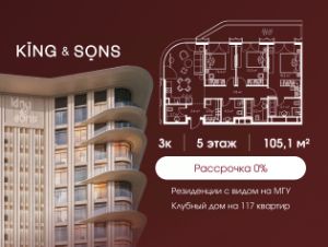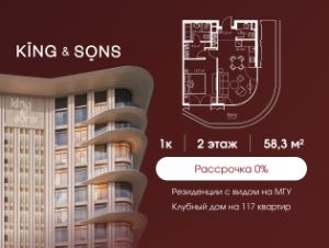 KING & SONS это клубный дом на 117 резиденций премиум-класса, расположенный на престижной и исторической улице Мосфильмовская. Из большинства квартир открываются панорамные виды на МГУ, ''Москву-Сити'', особняки посольств и парки. Это место для тех, кто не хочет выбирать между комфортом мегаполиса и уединением на природе.Проект разработан международным архитектурным бюро, которое входит в ТОП-2 в мире. Фасады из натурального камня, мягкие формы здания, максимально открытое остекление, окна в пол — все это делает облик здания выразительным и уникальным.В проекте предусмотрено 70% квартир с террасами. Потолки от 3,2 до 4,7 м. Паркинг на 110 машиномест.Для будущих резидентов продуманы разнообразные общественные пространства зимний сад в лобби первого этажа, секретный сад с зоной открытого огня, лаундж-зона с кинотеатром на крыше, собственный спортзал, зоны для занятий йогой и медитацией.KING & SONS это фамильная недвижимость, которую с гордостью передают по наследству