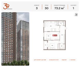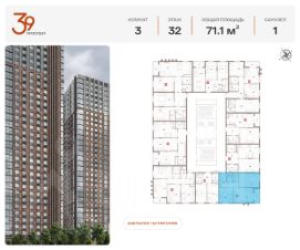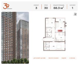 Номер лота: 314Продается трехкомнатная квартира в ЖК ''Проспект 39'' по адресу Москва, ЮВАО, Рязанский проспект, вл. 39, к. 1. Общая площадь квартиры - 80,10 кв.м., этаж 28. Стоимость квартиры - 30 186 959 р. Продаётся без отделки.Жилой комплекс состоит из пяти монолитных башен высотой 32 этажа. В архитектуре проекта используются приемы и материалы, отражающие стиль индустриализации, характерный для данной локации. Фасады оформлены с помощью плитки, имитирующей красный состаренный кирпич, и металлических элементов дымчато-чёрного оттенка. Верх башен выполнен из композитных зеркальных панелей.Ключевые преимущества:- Дом класса комфорт-плюс- Входные группы дополнены зоной ожидания- Развитая коммерческая инфраструктура- Закрытый минималистичный двор- Охрана и видеонаблюдение территории 24/7- Хорошая транспортная доступность позволяет быстро добраться до центральной части столицыВнутренняя отделка:- Урбанизм и современный минимализм- Трендовый стиль лофт, аскетичные и элегантные линии- Точечные светильники и стильный индивидуальный номер у каждой квартиры- Тёплая входная группа, декорированная гипсовыми 3D-панелями с подсветкой- Светлый пол из венецианского керамогранита в стиле ''тераццо'' и потолки типа грильято - Стены выполнены из итальянского керамогранитного слэбаРасположение:- 3 минуты до станции метро ''Стахановская''- 25 минут до станций метро ''Выхино'' и ''Рязанский проспект''- Удобный выезд на Рязанский проспектИнфраструктура:Первый этаж жилого комплекса отведен под коммерцию, здесь будет всё, что сделает жизнь в комплексе удобной: аптеки, магазины, салоны красоты. Рядом с комплексом находится торгово-развлекательный центр ''Город''. В ТРЦ доступны: семейный и строительный гипермаркеты, фудкорт, рестораны, детский развлекательный парк, магазины одежды и обуви, аптеки, ювелирные салоны, оптики, студии красоты, химчистка, отделения банков. Зелёный оазис в городе:В 15 минутах ходьбы от жилого комплекса расположена большая зелёная зона - Кусковский лесопарк. Комплекс находится рядом с музеем-заповедником, усыпанным 7 прудами. На территории лесопарка расположились усадьбы, музеи, храмы, имеющие историческую ценность для всего района.Узнать больше о комплексе можно позвонив по телефону офиса продаж или посетив офис продаж лично.