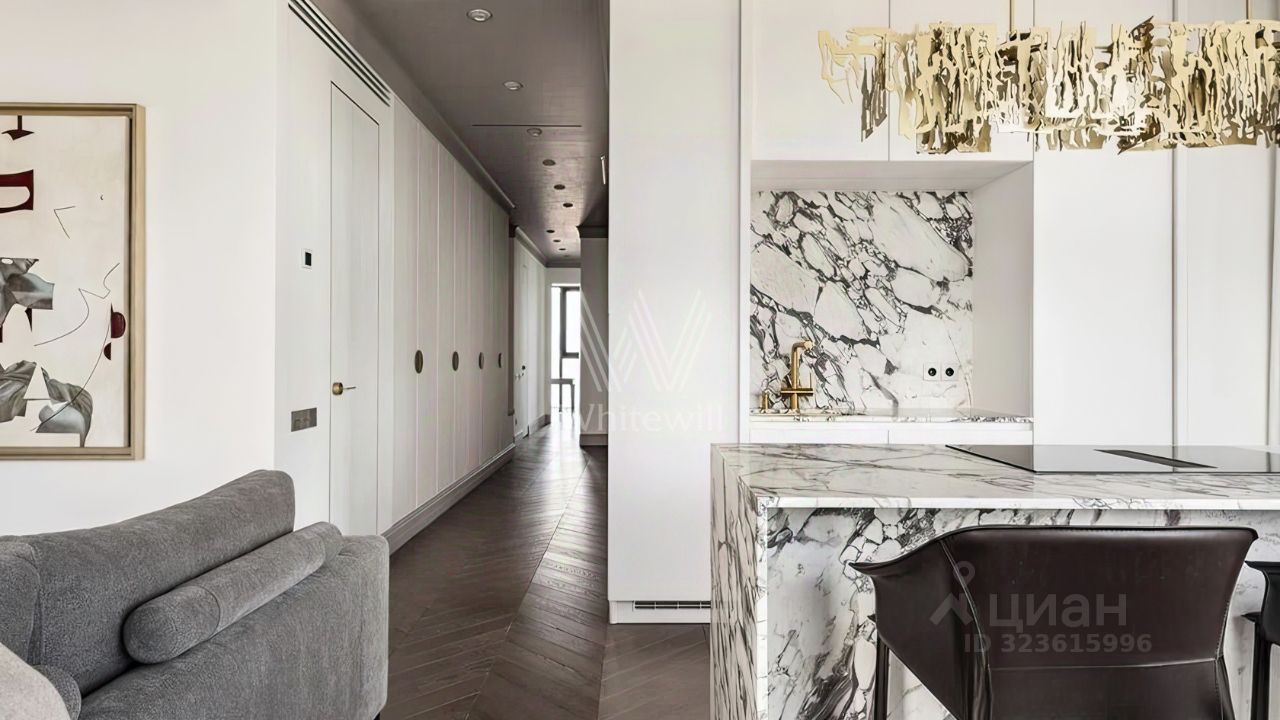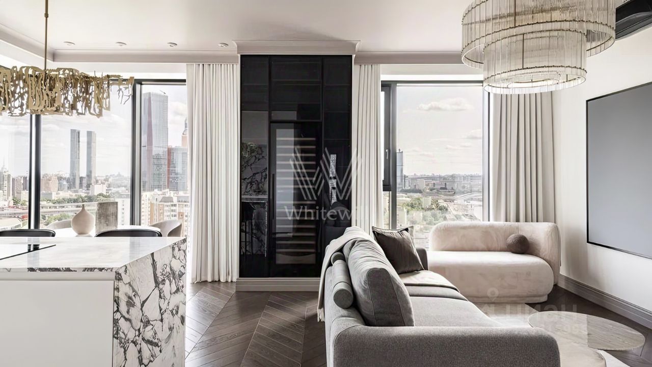 Квартира с тремя спальнями общей площадью 111 м² в комплексе бизнес-класса ''Level Причальный''. Квартира расположена на двадцать пятом этаже в корпусе ''Юг''. Выполнен дизайнерский ремонт с использованием натуральных материалов — европейский паркет, итальянский мрамор. Установлена система ''умный дом'', домашний кинотеатр со встроенной аудиосистемой. Квартира полностью меблирована и укомплектована бытовой техникой Miele. Функциональная планировка включает просторную кухню-гостиную с обеденной зоной, мастер-спальню с собственной ванной комнатой с окном и гардероной, две спальни, санузел, постирочную и холл. Благодаря панорамному остеклению и потолкам высотой 3 метра пространство наполнено естественным светом и теплом, открываются виды на город, Москву-реку и башни ''Москва-Сити''. Главное о доме. ''Level Причальный'' — квартал у воды с четырьмя корпусами. Многие квартиры смотрят на Москву-реку и на панорамы Москва-Сити, а большие окна усиливают ощущение света и пространства. В лобби — натуральный камень, мягкий свет, стойка ресепшн и высокий потолок. На стилобате — дворы со сценариями на каждый день: амфитеатр под открытым небом, ''пляжная'' песочница, уличные рабочие столы, тихие лаунж-зоны с гамаками и лежаками. Внутри комплекса есть собственный торговый центр с фитнесом, супермаркетом, кафе и повседневными сервисами. Под землёй — трёхуровневый подземный паркинг на шестьсот сорок машиномест с лифтовым доступом к корпусам. Главное о локации. Жизнь у набережной строится вокруг простых и привычных маршрутов. Утром дети идут в Романовскую школу или в детский сад поблизости, а взрослые начинают день с кофе в Moscow Heart Coffee. Днём удобно заехать в ''Фили Град'' или ''ВкусВилл'' за продуктами, пообедать в City Diner & Bar или пройти тренировку в школе бокса ''Метеор''. Вечером соседи выбирают прогулку по новой набережной или встречаются на площадках внутреннего двора. Район Хорошёво-Мнёвники совмещает зелёные зоны у реки и быстрый доступ к городским маршрутам. Комментарий эксперта. Меня зовут Евгений Чернышев — брокер компании Whitewill. Я отвечаю за продажу этого лота. Свяжитесь со мной, чтобы получить расширенную презентацию, больше фотографий или договориться о просмотре. Могу провести экскурсию по локации и познакомить вас с этим домом. ID 302 662.
