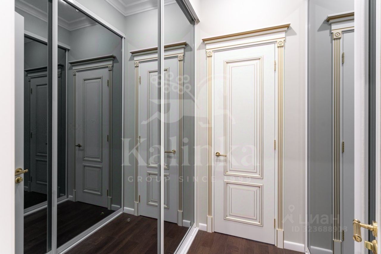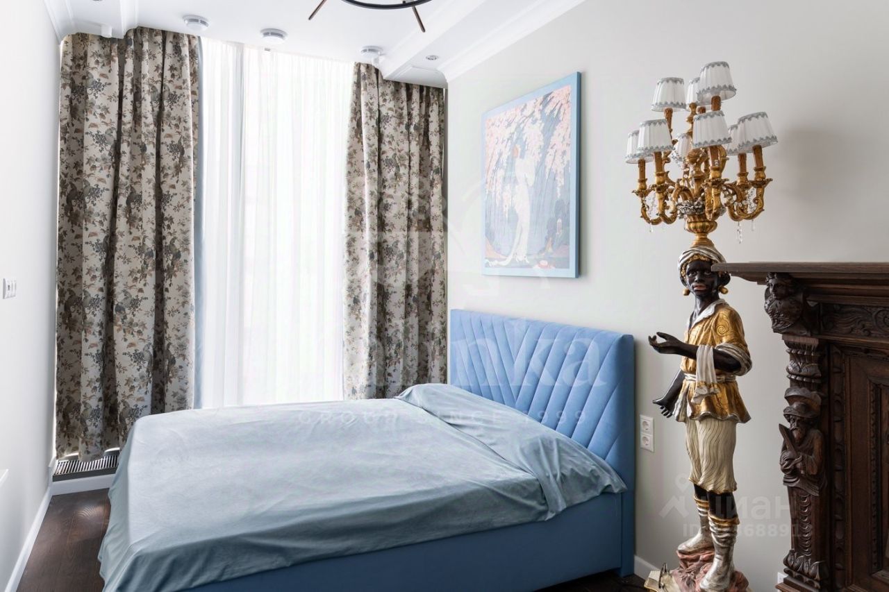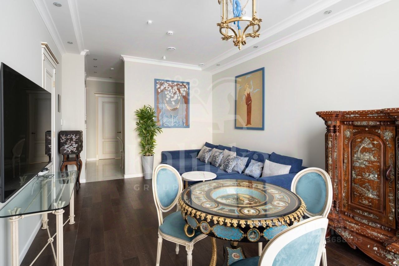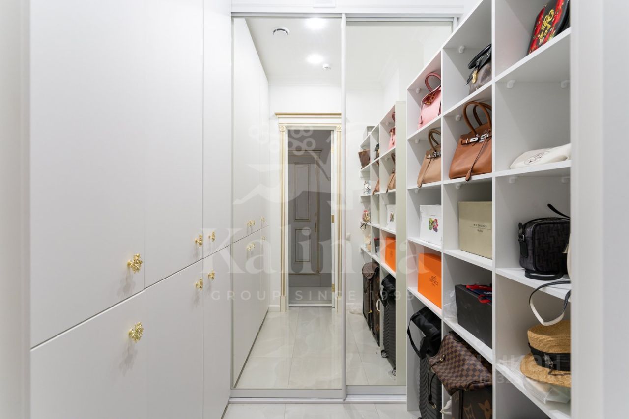 Просторная квартира с 3-мя спальнями общей площадью 287 м² в особняке ''Пречистенка 13'' в Хамовниках. Квартира с дизайнерским ремонтом расположена на 5-м этаже в корпусе 1. Выполнена отделка в стиле неоклассики с использованием высококачественных материалов — премиальная керамическая плитка, мрамор, паркет из ценных пород. Высота потолков 3,8 метра. Квартира полностью меблирована и укомплектована бытовой техникой. Все элементы декора, люстры и светильники подобраны по индивидуальному дизайн-проекту, дополнительным украшением интерьера служат колонны и расписные стены. Функциональная планировка: гостиная с выходом на балкон, кухня-столовая, мастер-спальня с собственной гардеробной и ванной, 2 спальни, 3 санузла, гардеробная, постирочная, холл. Благодаря большому количеству окон пространство наполнено светом, открываются панорамные виды на улицу Пречистенка, Лопухинский переулок и во внутренний двор. Описание комплекса ''Пречистенка 13'' — 8-этажный исторический особняк в стиле неоклассицизм, построен в 1912 по заказу владельца торгово-строительного акционерного общества Якова Рекка. В конце 80-х годов здание реконструировали, в 2014 году был возвращен исторический облик — полукруглый эркер со скульптурами, башенку с часами, внутреннюю отделку восстановили по архивным эскизам. На верхних этажах разместились трехуровневые пентхаусы с просторными террасами общей площадью 1 500 м², в каждой квартире есть возможность установить дровяной камин.