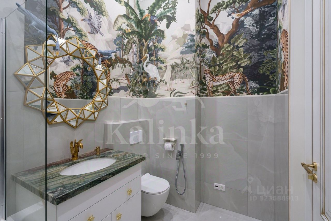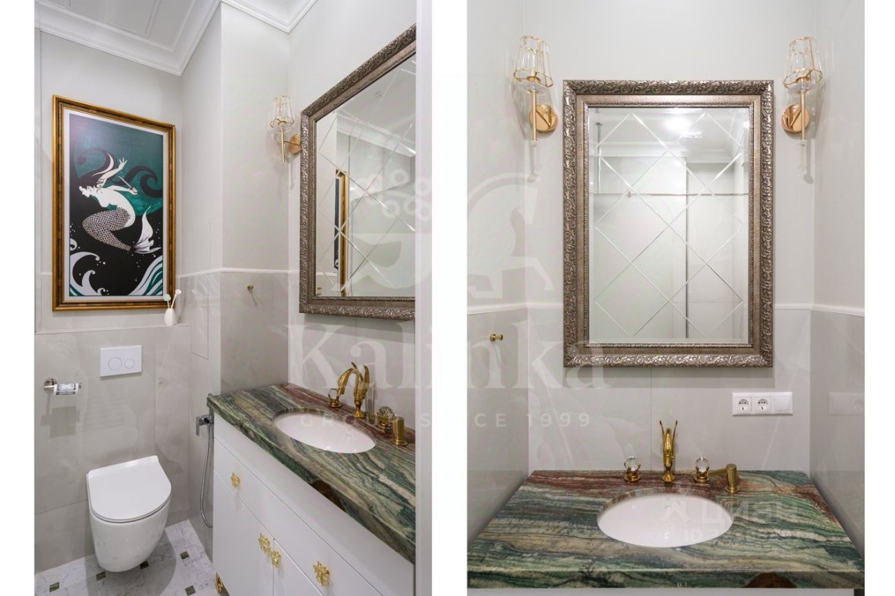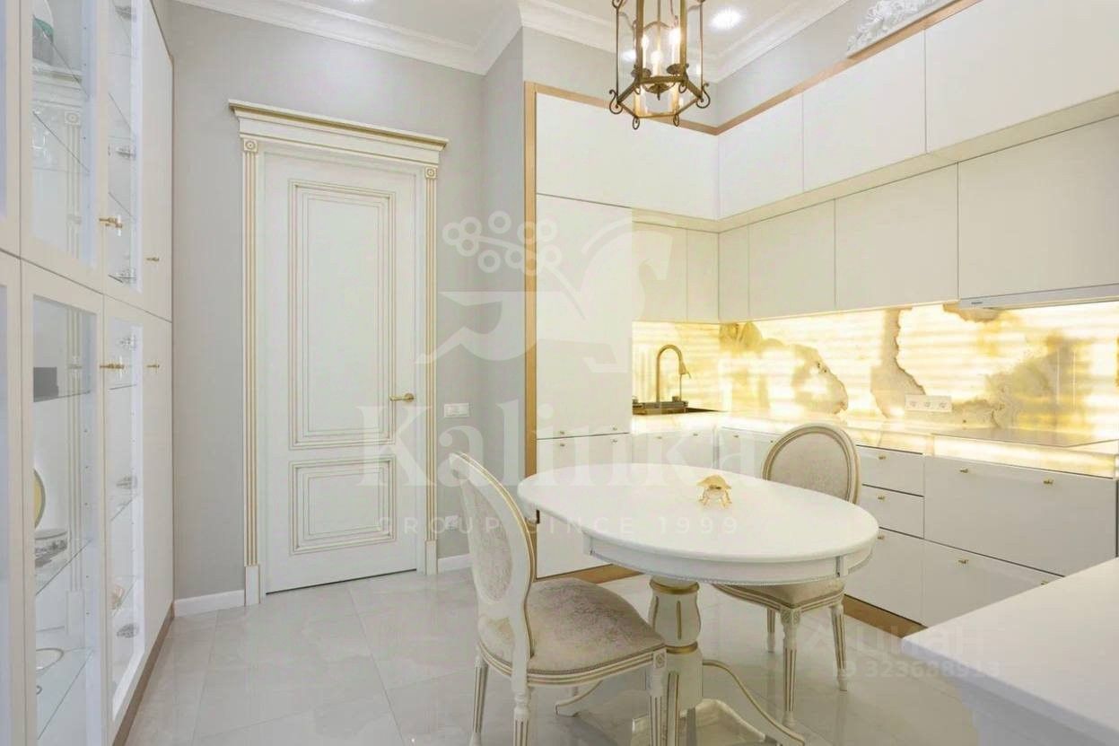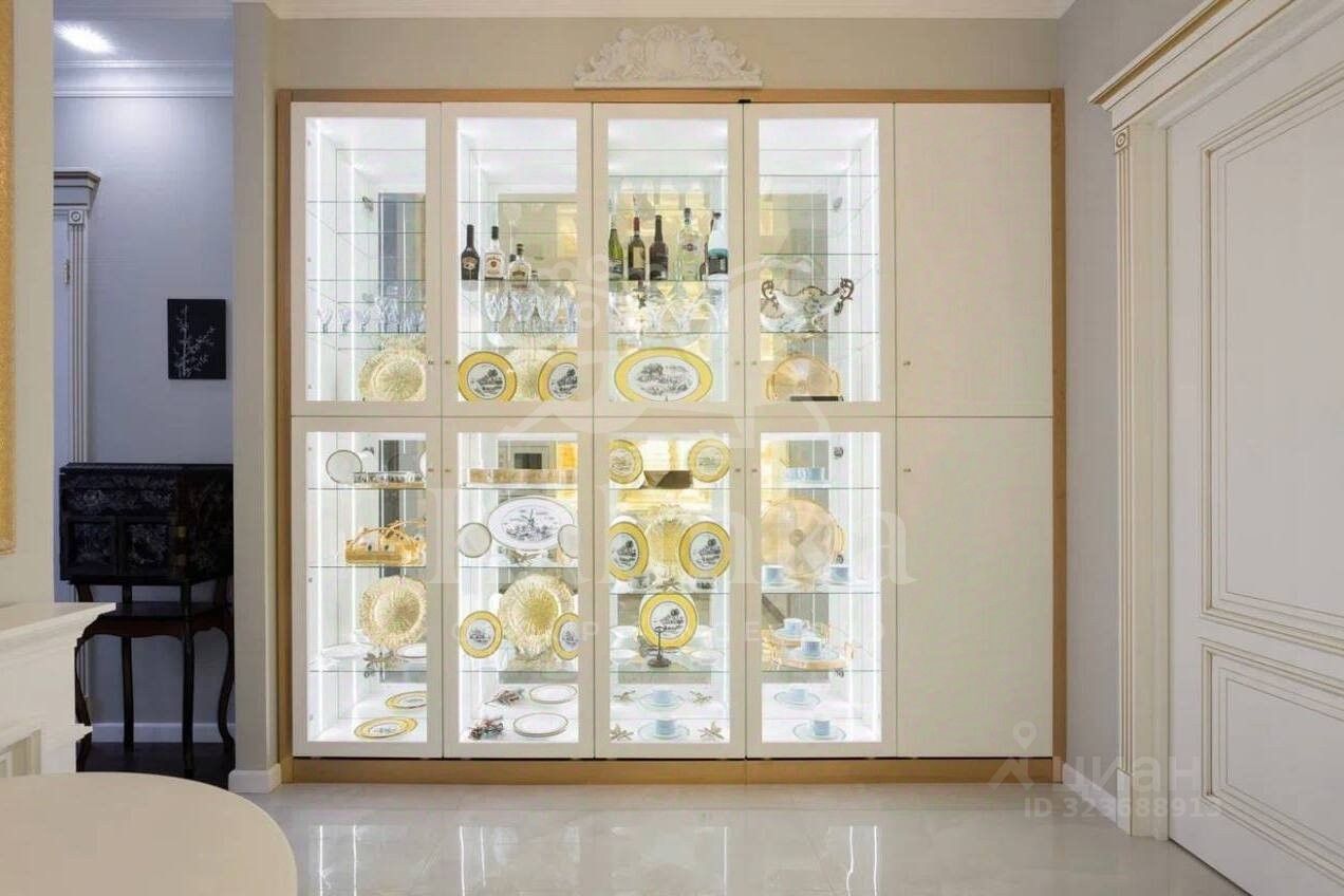 Просторная квартира с 3-мя спальнями общей площадью 287 м² в особняке ''Пречистенка 13'' в Хамовниках. Квартира с дизайнерским ремонтом расположена на 5-м этаже в корпусе 1. Выполнена отделка в стиле неоклассики с использованием высококачественных материалов — премиальная керамическая плитка, мрамор, паркет из ценных пород. Высота потолков 3,8 метра. Квартира полностью меблирована и укомплектована бытовой техникой. Все элементы декора, люстры и светильники подобраны по индивидуальному дизайн-проекту, дополнительным украшением интерьера служат колонны и расписные стены. Функциональная планировка: гостиная с выходом на балкон, кухня-столовая, мастер-спальня с собственной гардеробной и ванной, 2 спальни, 3 санузла, гардеробная, постирочная, холл. Благодаря большому количеству окон пространство наполнено светом, открываются панорамные виды на улицу Пречистенка, Лопухинский переулок и во внутренний двор. Описание комплекса ''Пречистенка 13'' — 8-этажный исторический особняк в стиле неоклассицизм, построен в 1912 по заказу владельца торгово-строительного акционерного общества Якова Рекка. В конце 80-х годов здание реконструировали, в 2014 году был возвращен исторический облик — полукруглый эркер со скульптурами, башенку с часами, внутреннюю отделку восстановили по архивным эскизам. На верхних этажах разместились трехуровневые пентхаусы с просторными террасами общей площадью 1 500 м², в каждой квартире есть возможность установить дровяной камин.