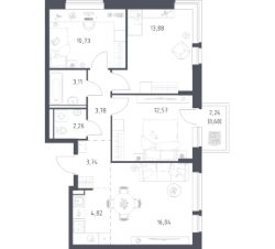Строим кварталы для жизни с заботой о будущем. Предлагается 3-комнатная квартира комфорт-класса площадью 76,15 кв.м в корпусе 2 на 19-м этаже, в жилом комплексе ''Квартал Строгино''.В варианте без отделки мы установили окна и входную дверь, завели в квартиру коммуникации. Получайте ключи и начните создавать интерьер мечты в новой квартире. В варианте с предчистовой отделкой мы развели коммуникации по помещениям, выровняли и зашпаклевали стены, подготовили пол к чистовому покрытию. Ваша будущая квартира готова к финишному ремонту. Осталось выбрать, какие оттенки будут в вашем интерьере и воплотить дизайнерские идеи. В варианте с готовой отделкой мы поклеили обои под покраску, постелили полы в комнатах и санузлах, выполнили отделку стен. Установили сантехнику и межкомнатные двери, провели электрику. Это лучшее соотношение цены, качества и затраченного времени. Осталось только выбрать место для обеденного стола и удобного дивана.Приобрести квартиру возможно по специальным акциям от застройщика, с текущими условиями акций можно ознакомиться в блоке ''Акций''.Цена динамическая и может отличаться, уточняйте актуальность у застройщика. В жилом комплексе ''Квартал Строгино'' вас ждет широкий выбор досуга. Рядом МКАД и выезд на Новорижское шоссе и станции метро ''Строгино'' и ''Мякинино''. В пешей доступности — Живописная бухта, можно доехать до ''Липовой Рощи'' и ''Серебряного бора''. На территории комплекса будут 2 детских сада, школа и поликлиника. Двор-парк с площадками, велодорожками и паркингами. В лобби есть помещения для колясок. Квартиры с готовой отделкой и видом на бухту.