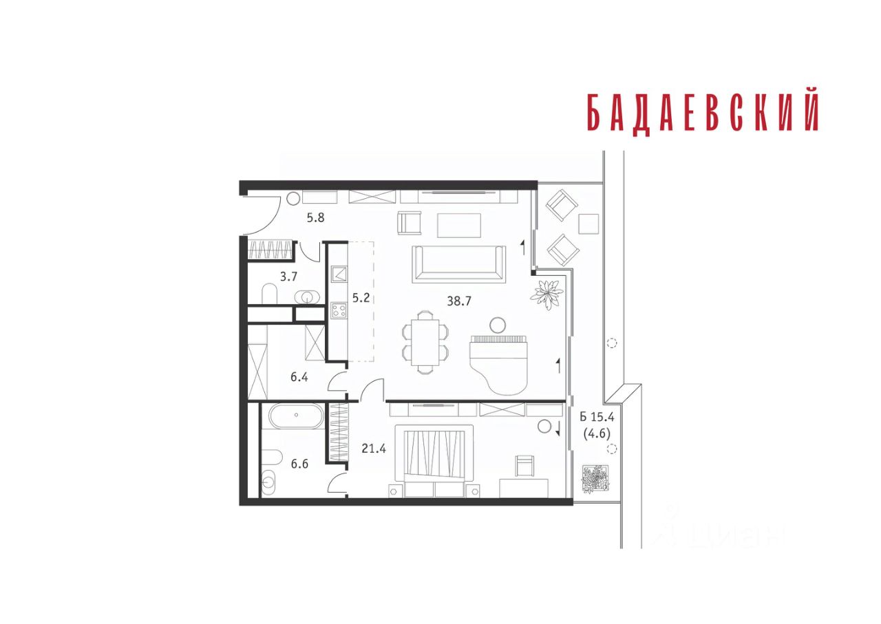 Продаётся 2-комнатная квартира общей площадью 92.40 м² на 15 этаже Жилого Комплекса Бадаевский. О нем говорили. Его ждали. Жилой комплекс ''Бадаевский'' на Кутузовском проспекте — это место для жизни, которое займет место в истории. Комплекс стал первым в истории московским проектом, победившим в категории Residential на World Architecture Festival. Девелопер Capital Group. В ''Бадаевском'' исторические здания завода и футуристические ''парящие'' дома создают единый комплекс, который станет новой достопримечательностью и символом Москвы. Панорамное остекление, террасы и веранды дарят неординарные и захватывающие виды. Благодаря расположению домов и панорамному остеклению, жилые пространства в ''Бадаевском'' будут наполнены светом. А виды из окон домов-''лент'' на Москву-реку, пивоваренный завод, небоскребы ''Москва-Сити'' и Белый дом дополнены принципиально новым ощущением высоты. На территории Бадаевского завода появится масштабный ландшафтный парк с концепцией ''русский лес''. Впервые в истории района Дорогомилово у жителей появится прямая связь набережной Тараса Шевченко с Кутузовским проспектом. Близость Москвы-реки добавляет к преимуществам ''Бадаевского'' природную энергетику и приятные прогулки на свежем воздухе. Подземная парковка позволит сделать территорию завода полностью пешеходной, а сам комплекс представит новый подход к организации открытого и уединенного пространства в центре Москвы. Расположение в начале Кутузовского проспекта делает проект не только престижным, но и удобным: до Третьего транспортного и Садового кольца можно доехать за 5 минут, а Кремль и основные исторические достопримечательности расположены в 15 минутах на автомобиле. Напротив ''Бадаевского'' находится офисный кластер ''Москва-Сити''. Для жителей комплекс будет создано не только новое масштабное благоустройство, но и вся необходимая инфраструктура. В исторических корпусах появятся магазины, бутики, кафе и рестораны, коворкинг и крафтовая пивоварня, а в зданиях элеваторов — русская баня. Кроме того, запланирован фермерский рынок и досуговый кластер с музыкальной студией, центром детского творчества и фитнес-центром с бассейном.