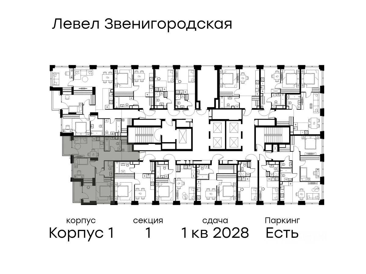 Цена указана с учётом скидки при 100%-й оплате, несубсидированной ипотеке, рассрочке (кроме программы ''Рассрочка 0%''). В жилом квартале продаётся 3-комнатная квартира площадью 64.20 кв.м white box. Квартира расположена на 11 этаже 48 этажного корпуса 1 в жилом комплексе комфорт класса Левел Звенигородская (компания Level Group/Левел групп). Отличная транспортная доступность - 5 мин. пешком до метро ''Звенигородская'' (откроется к окончанию строительства), - 18 мин. пешком до станции МЦК ''Хорошёво'' и станции БКЛ ''Народное ополчение'', - 4 мин. на авто до ТТК, - 8 мин. на авто до Садового кольца, - 15 мин. на авто до Кремля. Продуманный архитектурный проект - Концепция от студии Станислава Михаловского, в основу которой легло единение природы и города, - Двухкамерные стеклопакеты в окнах, алюминиевый и ПВХ профиль - в квартирах тепло зимой и прохладно летом, - С верхних этажей откроются панорамные виды на город, Москву-реку, ''Москва-Сити'' и Москворецкий парк, - Лобби со всеми удобствами: окна в пол, высокие потолки до 4,7 м, лаунж-зоны, колясочные, гостевые санузлы и мойки для лап животных, - Централизованные водонагреватели гарантируют круглогодичную подачу горячей воды в каждую квартиру. Благоустройство Концепция благоустройства разработана совместно с бюро UNK landscape. Высота башен приближается к 200 метрам - они словно касаются неба. Небесный простор проецируется на территорию двора с помощью подсветки, визуально увеличивая пространство и отражаясь в авторских элементах архитектуры. На территории площадью 0,45 га расположатся: - ''Облако событий'' - место встреч и общения, - ''Облако спорта'' - всё для поддержания себя в форме, - ''Облако принятия решений'' - пространство для работы на свежем воздухе, - ''Облако спокойствия'' - для отдыха в тишине природы, - ''Облако игр'' - площадки для подростков и самых маленьких. Инфраструктура В жилом комплексе откроется 21 коммерческое помещение: продуктовые лавки, кафе, салоны красоты, службы доставки и творческие студии. Этап 1 включает строительство двухуровневого подземного паркинга. Всего здесь расположится 351 машино-место, включая семейные места, и 264 кладовых помещения. В распоряжении жителей развитая инфраструктура района: 15 супермаркетов, 5 спортивных объектов, 9 медучреждений, 7 детских садов, 4 школы, 3 благоустроенных парка - всё в шаговой доступности. Инженерия Комфортное перемещение внутри домов будут обеспечивать надёжные лифты с доступом в паркинг с жилых этажей. В каждом корпусе предусмотрено до шести кабин, включая сервисные лифты. Попасть на территорию комплекса можно только по единому ключу доступа. Видеонаблюдение установлено на входах в подъезды, в лобби, в общих зонах, на въезде в паркинг. Гости смогут связаться с жителями дома через входные видеопанели, а управлять доступом на территорию можно через видеодомофон или приложение на телефоне.