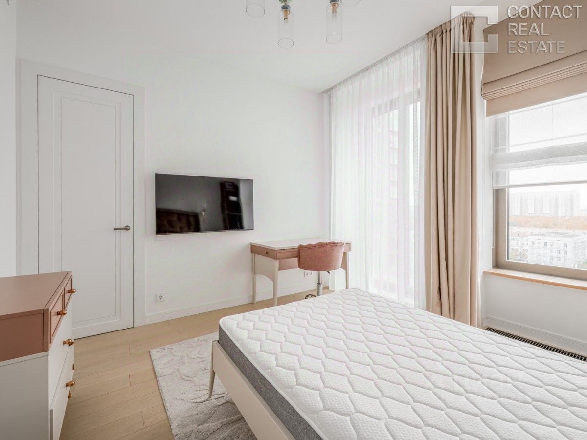Вашему вниманию предлагается видовая квартира общей площадью 115 м² с двумя спальнями в премиальном комплексе Lucky. Функциональная планировка: кухня-гостиная, мастер-спальня с гардеробной и ванной комнатой, вторая спальня c гардеробной, гостевой санузел, постирочная, просторный холл с нишей для хранения. Угловая квартира, много окон, благодаря чему всегда наполнена солнечным светом, предлагается с премиальной отделкой от застройщика в стиле Grey. Дизайн интерьера от итальянской студии Molteni Group. Установлена кухня и ванная итальянского бренда Dada. На полу деревянная паркетная доска с системой ''тёплый пол''. Санузлы облицованы керамогранитом и бетонной плиткой ''Терраццо''. Из окон открывается панормама на город и во внутреннюю благоустроенную территорию двора. Качество и комфорт жизни владельцев квартир обеспечивает целый комплекс инженерных систем, включающих технологии очистки воздуха и воды. Оборудована система ''Умный дом'', которая позволяет устанавливать индивидуальные параметры температурного режима, влажности и других удобств. Для решения бытовых вопросов жителей работает Служба комфорта на ресепшн. Жилой комплекс расположен на территории общей площадью 4,5 га и имеет хорошо развитую инфраструктуру: подземный паркинг, рестораны, кафе, спортивный центр, фитнес-маркет, образовательный центр, детский сад Cambridge. В непосредственной близости расположены Краснопресненский парк и парк Красногвардейские пруды. [Лот #24279]