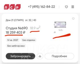 Продается квартира студия площадью 18.90 кв.м на 27 этаже 43 этажного монолитно-кирпичного дома в ЖК ''ЗИЛАРТ'' от Группа ЛСР. ЗИЛАРТ СПАРК — новый дом бизнес-класса в жилом квартале ''ЗИЛАРТ'' высотой 150 метров. Он сочетает в себе современную архитектуру, передовые технологии и восхитительные виды на ландшафтный парк ''Тюфелева Роща'' и бульвар Братьев Весниных. Близкое расположение к музейно-выставочному центру ''Коллекция'' и концертному залу создает вдохновляющую атмосферу места, где переплетаются жизнь и творчество. ЗИЛАРТ СПАРК расположен в престижном Даниловском районе. В пешей доступности находятся несколько станций метро: ''Тульская'', ''Автозаводская'', ''Технопарк'' и недавно открытая ''ЗИЛ'' Троицкой линии, с которой можно пересесть на одноименную станцию МЦК, а позже и на станцию ''ЗИЛ'' Бирюлевской линии (открытие запланировано на 2028 год).В пешей доступности есть вся необходимая инфраструктура: супермаркеты, салоны красоты, уютные кафе и рестораны, спортивные студии, места для досуга, отдыха и развлечений. На благоустроенной набережной Марка Шагала располагается действующий причал ''ЗИЛ''. Жилой комплекс даст возможность прогуляться по живописной набережной, просторному парку и бульвару. Любители здорового образа жизни и спортсмены оценят современные площадки для спортивных игр и фитнес-центр с бассейном. Молодые родители будут спокойны за настоящее и будущее детей благодаря современной образовательной среде. В ''ЗИЛАРТе'' расположена одна из самых больших школ России на 2,5 тысячи учеников.
