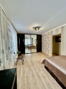 Квартира в хорошем состоянии, можно въехать и жить. Удобная планировка с большой кухней и выходом из нее на балкон. Вид из окон панорамный с шикарными видами на зарю. В квартире остается бо'льшая часть мебели: кухонный гарнитур, диван, объемный гардеробный шкаф в комнате, шкаф во коридоре. Один взрослый собственник, более 5 лет в собственности, без ограничений и обременений. Редкость для нынешнего рынка - вся история переходов прав сохранена - все понятно и прозрачно.