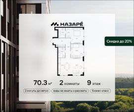 Продается 2-комнатная квартира в ЖК ''НАЗАРЕ'''Общая площадь - 49.90Тип дома - монолитный Этаж - 14Год сдачи - 2028Предлагается квартира площадью 49.90 кв. м в новом современном квартале на востоке Москвы, прямо у станций метро и МЦК ''Бульвар Рокоссовского''. Квартира располагается в корпусе 6 на 14 этаже комплекса бизнес-класса ''НАЗАРЕ'''.Стоимость указана с учетом скидки 10%, ваша выгода составит 2 624 241 рублей! Полная стоимость квартиры без скидки 26 242 410 рублей.Великолепная транспортная доступность:• 2 минуты ходьбы до метро и МЦК ''Бульвар Рокоссовского'',• 3 минуты на авто - удобный выезд на СВХ (МСД),• 10 минут на авто до национального парка ''Лосиный остров'',• 10 минут на авто до ''Измайловского парка'',• 15 минут до авто до парка ''Сокольники'',• 15 минут занимает выезд на ТТК,• 18 минут на авто до Садового кольца.Индивидуальная архитектура в современном стиле: • шесть башен переменной высотности от 24 до 43 этажей, в том числе одна высотная 143-метровая доминанта, которая станет достопримечательностью востока Москвы,• авторы архитектурной концепции - знаменитое бюро СПИЧ (среди их работ - башня ''Федерация'', новое здание Третьяковской галереи, реконструкция БСА ''Лужники'' и др.),• торгово-развлекательный комплекс с фитнес-центром, детской игровой комнатой и открытыми террасами прямо возле квартала,• дизайнерские лобби от бюро ABOVE ARCHITECTURE с панорамными окнами, интерьерами в теплой цветовой гамме и мягкой зоной ожидания располагаются в каждой башне,• корпуса расположены так, чтобы из окон открывались потрясающие виды на закаты и рассветы, зеленые панорамы или огни мегаполиса,Особенности расположения''НАЗАРЕ''' находится максимально близко к метро, и в то же время проект вписан в уже существующую инфраструктуру зеленого столичного района Богородское. Это обеспечивает быстрый доступ ко всем нужным объектам инфраструктуры (детские сады, школы, медцентры, магазины, салоны красоты, фитнес-клубы, футбольные поля, спортивные школы), а также к живописным зеленым зонам - национальному парку ''Лосиный остров'', парку ''Сокольники'', Черкизовскому детскому парку, Измайловскому лесопарку с усадьбой Измайлово.Собственная инфраструктура и благоустройствоШесть башен квартала будут объединены цокольным этажом, в который можно попасть как с улицы, так и со стороны лобби. Здесь разместятся необходимые для комфортной повседневной жизни кофейни, супермаркет, рестораны, магазины и многое другое. В комплексе предусмотрен вместительный двухуровневый подземный паркинг с келлерами для хранения сезонных вещей. Во дворе комплекса ''НАЗАРЕ''' будут места как для спокойного отдыха и работы, так и для игр и спорта. Здесь организованы игровые площадки для детей всех возврастов, места для стритбола и тенниса, а также зона с природным ландшафтом и коворкинг с экологичной деревянной мебелью.