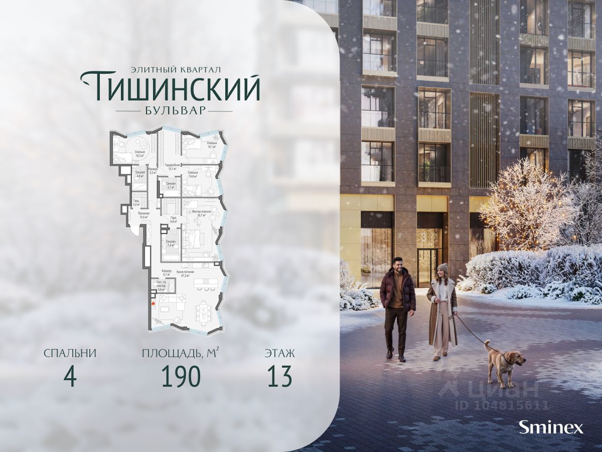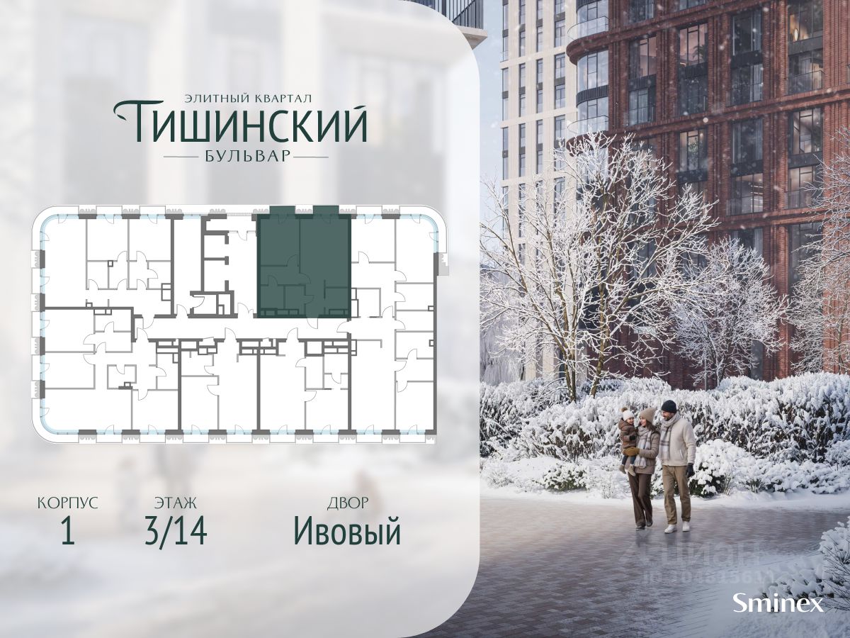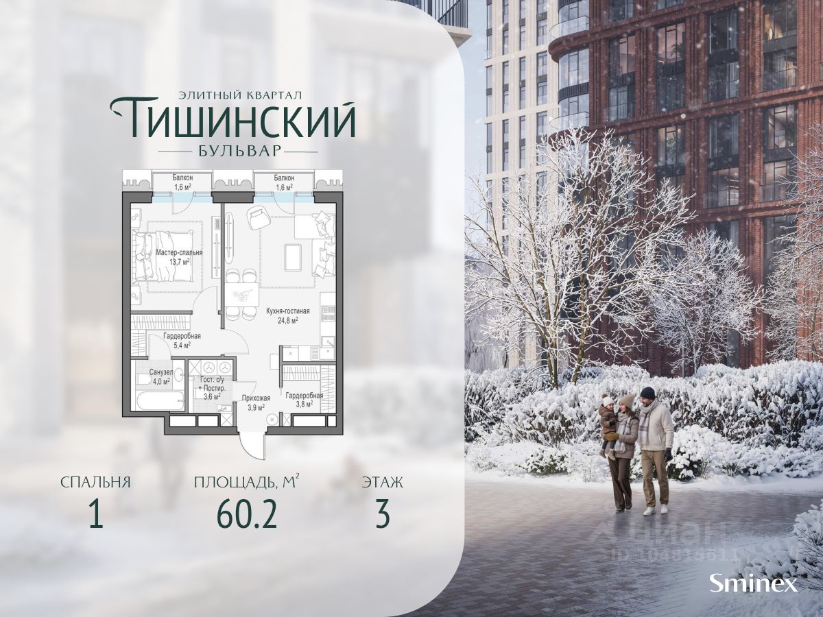 В продаже 1-комнатная квартира квартира в элитном квартале ''Тишинский бульвар''. Общая площадь квартиры - 60.20 кв.м. Этаж 3 из 14. Корпус К4С1. ''Тишинский бульвар'' - тихий зелёный элитный квартал на Тишинке, в престижном и комфортном районе центра Москвы. В нём создан уникальный для элитного дома прогулочный бульвар в своём огромном парке 1,9 га. В парке оборудованы зоны для активного и тихого отдыха, крытые галереи, приватные зелёные комнаты, многофункциональная спортивная площадка, воркаут-зона, детская площадка, сухой фонтан, ручей. В пешей доступности Римско-католический кафедральный собор. Всего в полутора километрах от квартала находятся Патриаршие пруды - излюбленное место для летних прогулок, воскресных бранчей и романтических ужинов. Белая площадь расположена ещё ближе - на расстоянии 1,2 километра. Это точка концентрации деловой жизни и модных ресторанов. В ''Тишинский бульваре'' только для жителей и их гостей создан уникальный для элитного дома прогулочный бульвар в собственном огромном парке площадью 2,1 га, который занимает 70% территории квартала. Бульвар проходит через весь квартал и объединяет в общее пространство три двора: Кленовый, Рябиновый и Ивовый. В парке созданы крытые галереи и приватные зелёные комнаты для отдыха и медитаций в любую погоду. Насыщенное озеленение многолетними растениями с разными периодами цветения сохраняет территорию квартала красивой круглый год. В квартале насыщенная инфраструктура только для жителей, включая Clubhouse. Здесь оборудованы пространства для здорового образа жизни по стандарту FIT LAB: в парке - многофункциональная спортивная площадка, воркаут-зона, место для занятий йогой и медитации, бесплатный фитнес-клуб с бассейном. Для маленьких жителей доступны детская площадка и игровая комната по стандарту KIDS LAB. Дома оснащены самыми полными и лучшими системами.