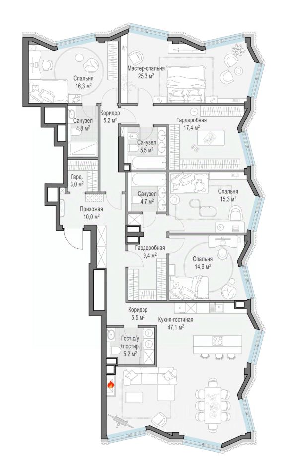164 м² · Этаж 16 из 22