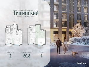 В продаже 2-комнатная квартира квартира в элитном квартале ''Тишинский бульвар''.Общая площадь квартиры - 60.80 кв.м. Этаж 4 из 14.Корпус К6.''Тишинский бульвар'' - тихий зелёный элитный квартал на Тишинке, в престижном и комфортном районе центра Москвы. В нём создан уникальный для элитного дома прогулочный бульвар в своём огромном парке 1,9 га. В парке оборудованы зоны для активного и тихого отдыха, крытые галереи, приватные зелёные комнаты, многофункциональная спортивная площадка, воркаут-зона, детская площадка, сухой фонтан, ручей.В пешей доступности Римско-католический кафедральный собор. Всего в полутора километрах от квартала находятся Патриаршие пруды - излюбленное место для летних прогулок, воскресных бранчей и романтических ужинов. Белая площадь расположена ещё ближе - на расстоянии 1,2 километра. Это точка концентрации деловой жизни и модных ресторанов.В ''Тишинский бульваре'' только для жителей и их гостей создан уникальный для элитного дома прогулочный бульвар в собственном огромном парке площадью 2,1 га, который занимает 70% территории квартала. Бульвар проходит через весь квартал и объединяет в общее пространство три двора: Кленовый, Рябиновый и Ивовый.В парке созданы крытые галереи и приватные зелёные комнаты для отдыха и медитаций в любую погоду. Насыщенное озеленение многолетними растениями с разными периодами цветения сохраняет территорию квартала красивой круглый год.В квартале насыщенная инфраструктура только для жителей, включая Clubhouse. Здесь оборудованы пространства для здорового образа жизни по стандарту FIT LAB: в парке - многофункциональная спортивная площадка, воркаут-зона, место для занятий йогой и медитации, бесплатный фитнес-клуб с бассейном. Для маленьких жителей доступны детская площадка и игровая комната по стандарту KIDS LAB.Дома оснащены самыми полными и лучшими системами.