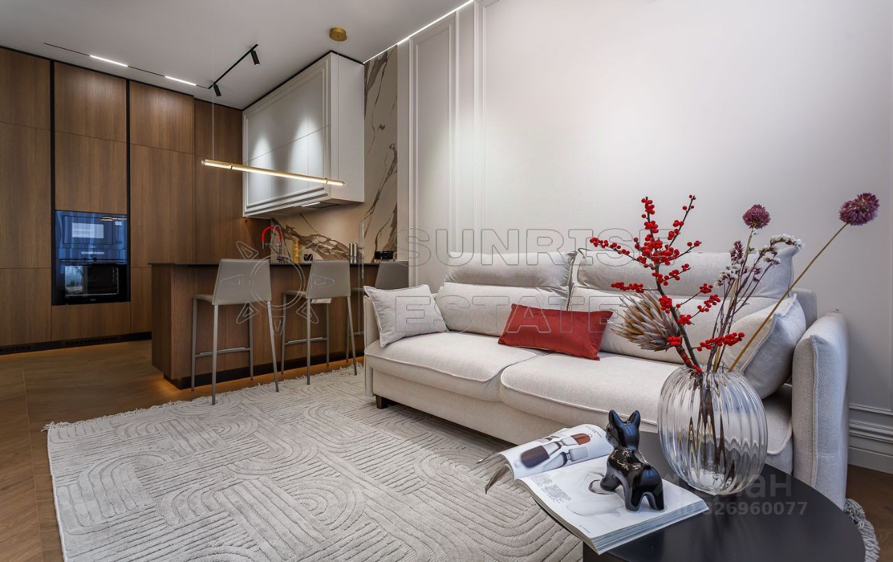 Арт. 129405523 Предлагается квартира в жилом комплексе бизнес-класса ''Крылья'' Так же есть возможность приобрести удобное парковочное место в подземном паркинге Выполнена дизайнерская отделка в современном стиле, продуманы различные сценарии освещения КВАРТИРА: Планировка представляет собой большую просторную кухню-гостиную, изолированную спальню, гардеробную и два сан узла. Квартира оборудована всей необходимой мебелью и техникой для комфортного проживания: - Натуральный камень и декоративные панели в отделке - Мебель из МДФ, изготовленная по индивидуальному заказу. - Черновая сантехника Rehau. - Электрическая система с использованием автоматов ABB. - Установлена система от протечки Нептун. - Система кондиционирования. - Система очистки воды. - Проточный водонагреватель на случай отключения горячей воды. Квартира полностью готова к проживанию, вся мебель и техника остаются покупателю и входят в стоимость квартиры. ЖК: Территория комплекса представляет из себя 3 корпуса архитектурой в форме лепестков. Закрытая территория, подземный паркинг, консьерж-сервис. Во дворе пруд и летний кинотеатр, своя школа, а также охрана, видеонаблюдение, автомойка, зарядки для электромобилей и система пожаротушения. ЛОКАЦИЯ: Район Раменки - одна из самых престижных локаций Москвы. рядом: МГУ, МГИМО, Воробьёвы горы, огромный парк Долина Сетунь. Развитая инфраструктура с несколькими школами, садами и магазинами и парками: (Воробьевы горы, Ботанический сад, МГУ Парк Олимпийской деревни, Парк 50-летия Октября, Матвеевский лес). Метро Аминьевское - 3 мин. пешком. Удобный выезд на Аминьевское и Рублёвское шоссе, Кутузовский, Мичуринский, Ленинский, Мосфильмовскую. Один собственник,полная стоимость в договоре. Без обременений Остались вопросы? ЗВОНИТЕ! С удовольствием отвечу на них по телефону и оперативно покажу!