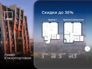 Цена указана с учётом скидки при 100%-й оплате, несубсидированной ипотеке, рассрочке (кроме программы ''Рассрочка 0%'').В северной части района Печатники продается 3-комнатная квартира площадью 69.30 кв.м без отделки. Квартира расположена на 68 этаже 68-этажного корпуса 3 в жилом комплексе комфорт-класса Левел Южнопортовая (компания Level Group/Левел групп). Отличная транспортная доступность:- 10 мин. пешком до станции метро ''Кожуховская'',- 20 мин. пешком до станции МЦК ''Дубровка'',- 3 мин. на авто до ТТК,- 13 мин. на авто до Садового кольца,- 15 мин. на авто до Бульварного кольца. Продуманный архитектурный проект:- авторская архитектура от бюро СПИЧ,- уникальные виды на реку, парки и достопримечательности города,- высота потолков в квартирах до 6 м,- окна высотой до 1,87 м с высоким коэффициентом сопротивления теплоотдаче. Расположение:Жилой комплекс Левел Южнопортовая строится в северной части района Печатники - самой приближенной к центру. Здесь будет сформирован новый район ''Южный порт'', где построят крупный жилой и общественно-деловой центр, аналогичный Москва-Сити. В течение 10-12 лет в этом месте появятся не только жилые дома, но и развитая инфраструктура для жизни и работы. А еще совсем рядом находится набережная Москвы-реки, где планируется построить причалы для речных трамвайчиков и канатную дорогу.Уже сейчас вокруг жилого комплекса работают десятки магазинов и торговых центров, рядом расположено 6 парков, среди которых музей-заповедник ''Коломенское''. В 10 минутах пешком - 2 муниципальных и 2 частных детских сада, 7 общеобразовательных школ.Внутренняя инфраструктура:Для отдыха жителей в каждом корпусе предусмотрено лобби, оснащенное местами для отдыха, гостевыми санузлами и лапомойками, а в отдельных корпусах - камином. За счёт больших окон и высоких потолков пространства будут наполнены воздухом и светом.На первых этажах жилого комплекса откроются магазины, салоны красоты, фитнес-центр. Для детей строятся собственные детский сад и школа. Благоустройство:Внутренний двор комплекса разработан совместно с бюро GAFA. Основная идея - создать аналог Центрального парка в Нью-Йорке, гармонично сочетая высотные здания и большое изолированное парковое пространство.Вся площадь двора-парка будет огорожена и составит более 2 га, из которых 45% - озеленение. Одним из самых важных ландшафтных элементов здесь станет небольшая речка, наполняющаяся во время дождя. Вокруг неё появится сеть из островов, внутри которых расположатся тематические зоны спорта и отдыха. Технологии и инженерия:- автоматическая передача в управляющую компанию показаний квартирных счётчиков,- телефонная связь, телевидение и интернет на базе оптической мультисервисной сети,- гостевой Wi-Fi в лобби и на территории двора,- единый ключ доступа для входа на территорию комплекса.