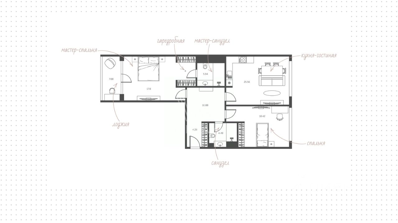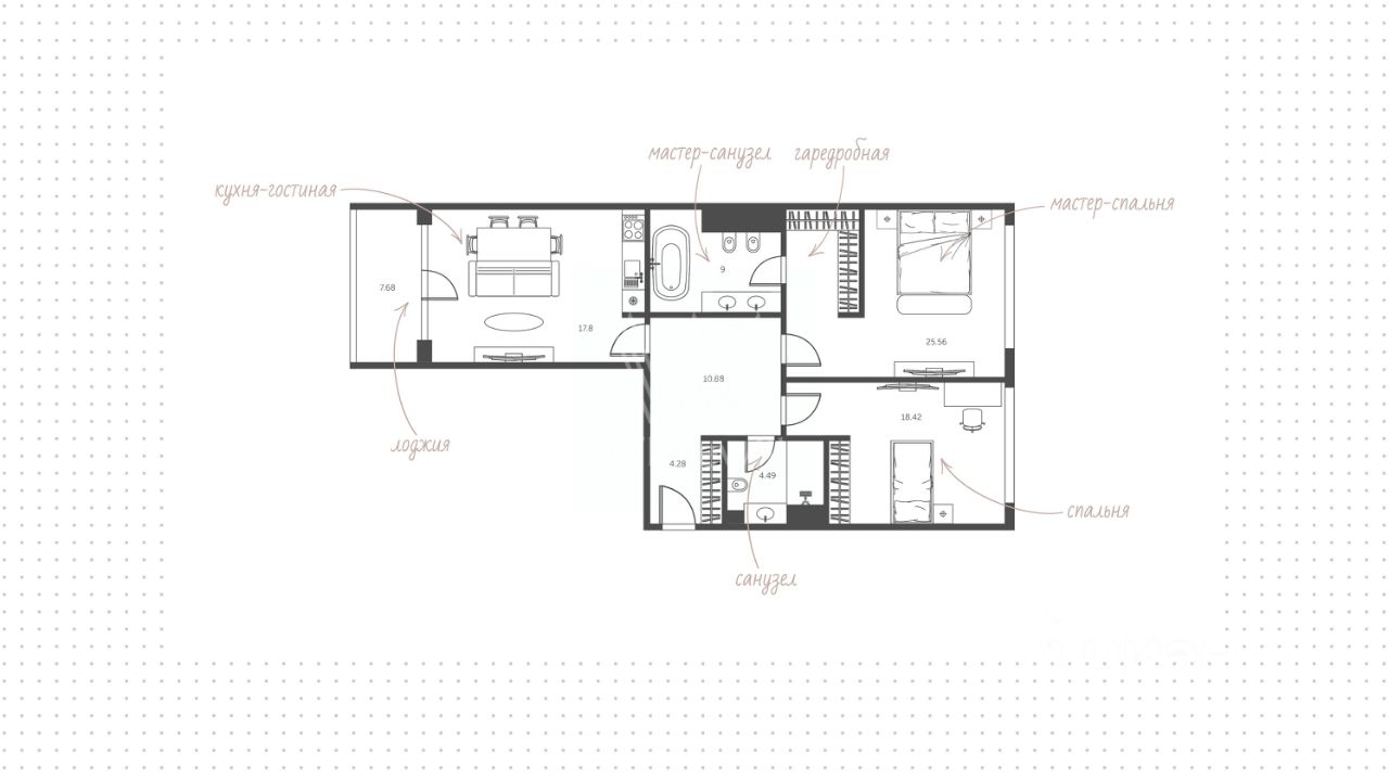 128 м² · Этаж 18 из 34