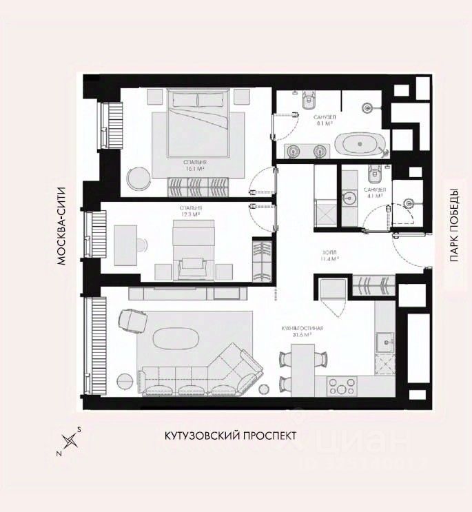 Предлагается к покупке прекрасная, светлая квартира с премиальной отделкой в стиле ''неоклассика''. Квартира расположена на 6м этаже элитного жилого комплекса de luxe ЖК Victory Park Residences. Великолепная планировка, площадь квартиры максимально эффективно спланирована: спальня, площадью 19.3м2, просторная кухня - гостиная, площадью 32.4м2. Панорамные окна, высокие потолки 3.2м. Территория, инфраструктура. На территории предусмотрено все для комфортной жизни. Victory Gallery собственное пространство для шоппинга и развлечений, с бассейном и spa, салонами красоты, ресторанами, кинотеатром и океанариумом. Транспортная доступность. До Москва-Сити можно доехать за 7 мин на автомобиле, до центра города и Кремля за 15 мин. или пешком до м. Парк Победы за 10 мин. Номер в базе: J26845