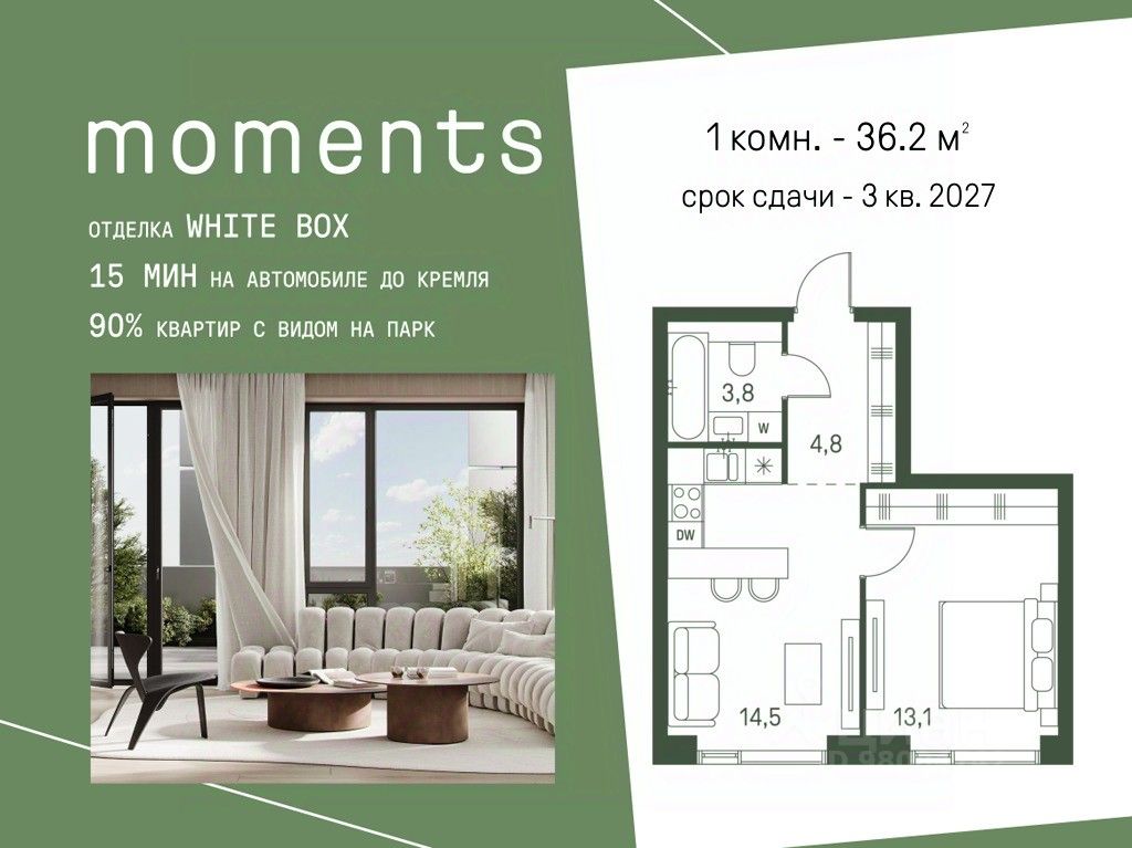 Цены указаны с условием 100% оплаты и стандартной ипотеки. Продается 1-к. квартира номер 437 общей площадью 36.2 кв.м. на 6-м этаже 40 этажного дома, корпус 2.3. С отделкой White Box. Moments — ЖК бизнес-класса, расположен на расстоянии вытянутой руки от старинного усадебного парка Покровское-Стрешнево. Moments — это единение города и природы, дом, который помогает обрести гармонию и баланс в жизни. Moments расположен на Волоколамском шоссе с удобным выездом в центр и в область, а также с расположенными в пешей доступности объектами транспортной инфраструктуры (МЦК и МЦД-2). Жилой комплекс будет состоять из 3 очередей — 8 корпусов высотой от 4 до 47 этажей. Здания будут расположены под разными углами для максимальной открытости солнцу и максимально роскошным видовым характеристикам. Внутренний двор: Иммерсивное благоустройство от британского бюро Gillespies и West8 сфокусировано на эмоциональном и чувственном опыте. Каждая прогулка по Moments погружает в путешествие со сменой сценариев и плавным потоком уникальных моментов. - Пешеходная экотропа,которая соединяет комплекс с парком Покровское-Стрешнево - Двор с фонтаном - Зеленые сады и лаунж-зоны - Пространства для пикников и общения - Зоны активного отдыха. Детские и спортивные площадки - Пешеходные тропы и велодорожки - Разнообразная коммерческая инфраструктура - Детский сад на 175 мест - Школа на 300 мест - Игровые площадки из натуральных материалов - Сенсорные сады - Безбарьерное зонирование