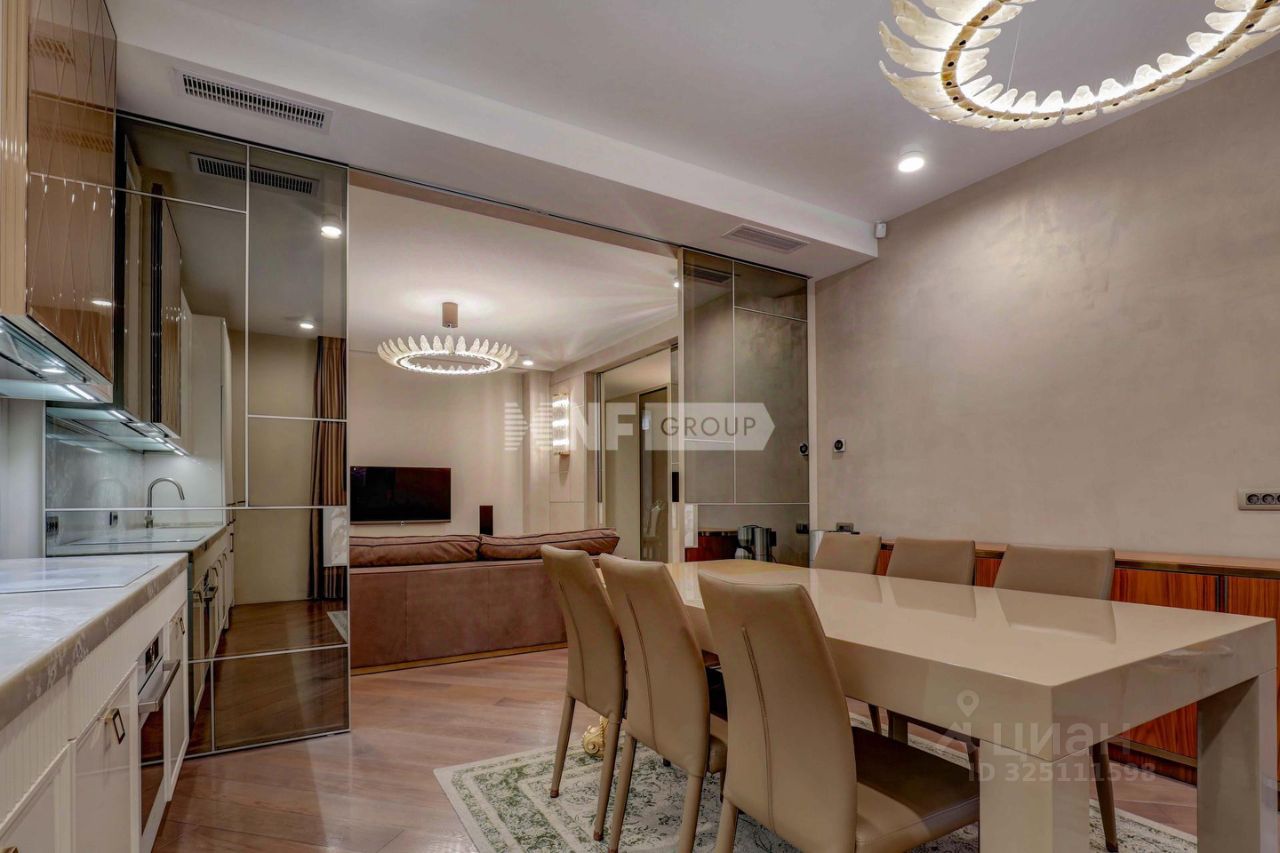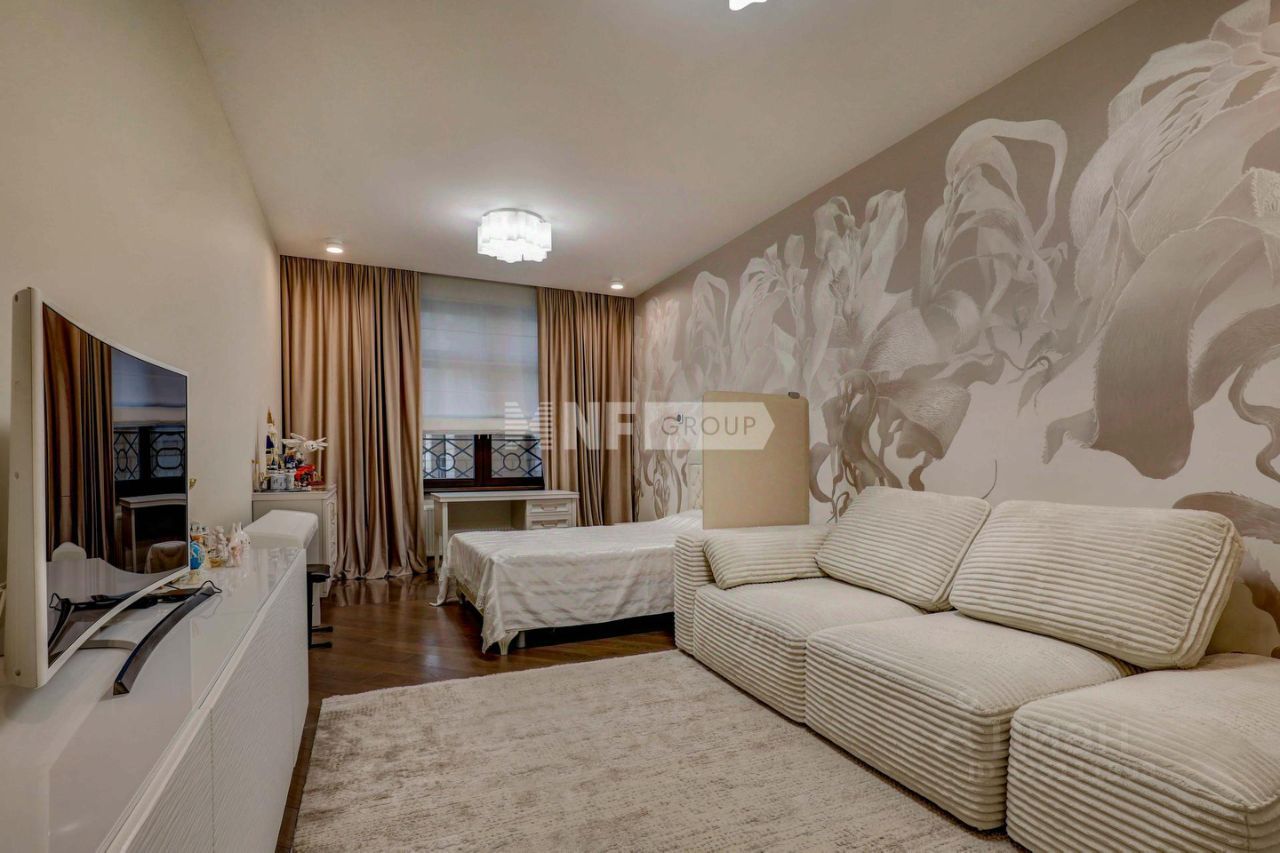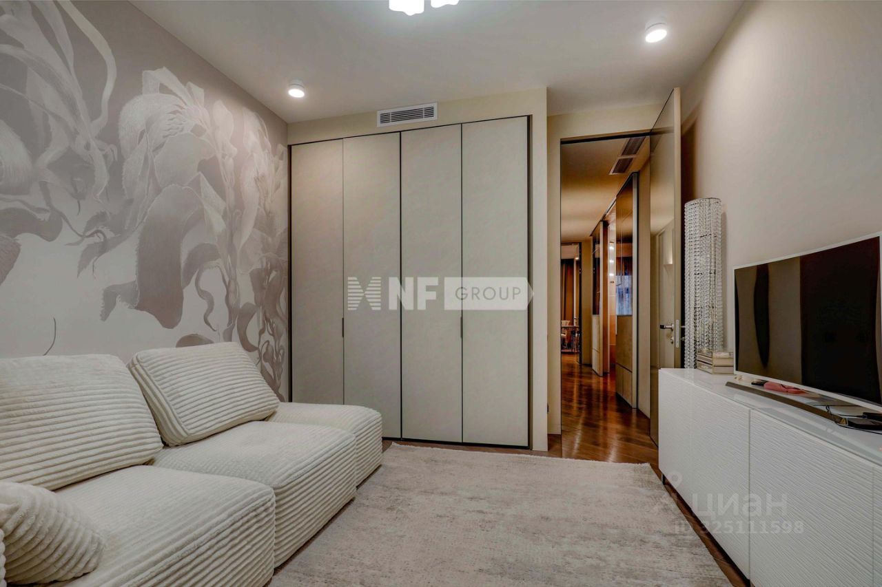 Просторная квартира в районе Хорошево-Мневники, проспект Маршала Жукова, 76к2 Видовая квартира 190.8 м2 с уютной, функциональной планировкой: большая кухня-столовая-гостиная с камином - 50м2 хозяйская спальня - 35.6 м2 2 спальни-детские с балконами - 15.9 м2 и 16.3 м2 кабинет/спальня - 17.2 м2 с гардеробной - 4.5 м2 2 санузла - 9.1 м2 и 11 м2 просторные холлы и коридор. Высота потолков - 2.80 м. Редкая квартира для большой семьи! Квартира светлая, чистая, выполнен ремонт по индивидуальному дизайн проекту, косметический ремонт 2023 года. Кондиционеры во всех комнатах - комфортный климат круглый год. Материал полов - паркетная доска, плитка - в ванных комнатах система тёплых полов. Установлена мебель в кухне, в спальнях, бытовая техника - Ваша задача создать свой уют в собственном доме! На этаже 5 квартир. 2 пассажирских лифта, 1 грузовой. 7 подъездов в доме. В доме 4-х уровневый подземный паркинг, также есть придомовая парковка. Инфраструктура: 10 минут пешком - Курчатовская школа ''Школа-интернат 101, гимназия 1517, лицей 138, хорошевская прогимназия. 3-8 минут - 6 детских садов. 7-15 минут - поликлиники N9, 2, детская поликлиника N6, Семейный доктор. Магазины - Магнолия, Пятёрочка, Магнит, ВкусВилл. Для отдыха: парки Серебряный Бор, ''Москворецкий'', ''Крылатские Холмы''. в 30 минутах - пляжи Серебряного Бора у реки Москвы. Транспортная доступность: м. Народного Ополчения- 30 минут пешком, автобусом 5 минут, остановка общественного транспорта рядом с домом. Свободная продажа, 1 собственник, без обременений, никто не зарегистрирован, быстрый выход на сделку. ЗВОНИТЕ! Замечательная квартира для большой семьи!