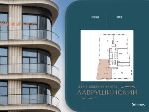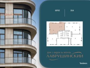 Просторная светлая квартира площадью 169.3 кв. м. Кухня-гостиная обращена окнами в сторону Кремля, а панорамное остекление, моллированные окна и открытый балкон улучшают видовые характеристики квартиры. Продуманная планировка позволяет разместить три спальные комнаты с отдельными санузлами и гардеробными. Окна квартиры выходят на две стороны.''Лаврушинский'' - бескомпромиссный дом с лучшими видами на Кремль. Благодаря расположению всего в одном километре от Кремля, своей высоте и малоэтажной окружающей застройке, из квартир открываются поразительные прямые виды на главные достопримечательности центра Москвы, включая храм Христа Спасителя и собор Василия Блаженного. Расположение в глубине квартала, посередине парка, дает удивительное для центра ощущение тишины и простора.На закрытой территории находится самый большой на элитном рынке собственный ландшафтный парк площадью 1,4 га с фонтаном, ручьём, зонами для воркаута и тихого отдыха. KIDS LAB: развивающая детская площадка на улице и игровая комната в помещении. FIT LAB: фитнес-клуб с 25-метровым бассейном, beauty room, доступные только для жителей.В проекте уникальный выбор квартир с просторными балконами, пентхаусов с террасами, бассейнами и каминами, максимальными видовыми характеристиками, а также роскошных вилл. Всего - 153 квартиры и 101 продуманное планировочное решение. Высота потолков составляет от 3,5 до 8,25 м. В доме предусмотрен 2х-уровневый паркинг на 279 машино-места.В доме предусмотрен полный комплекс систем комфорта, включающий приточно-вытяжную вентиляцию с тонкой фильтрацией с принципом забора воздуха с высоты 50 метров для повышения продолжительности жизни, отдельный сервисный лифт для обслуживающего персонала и другие современные системы.