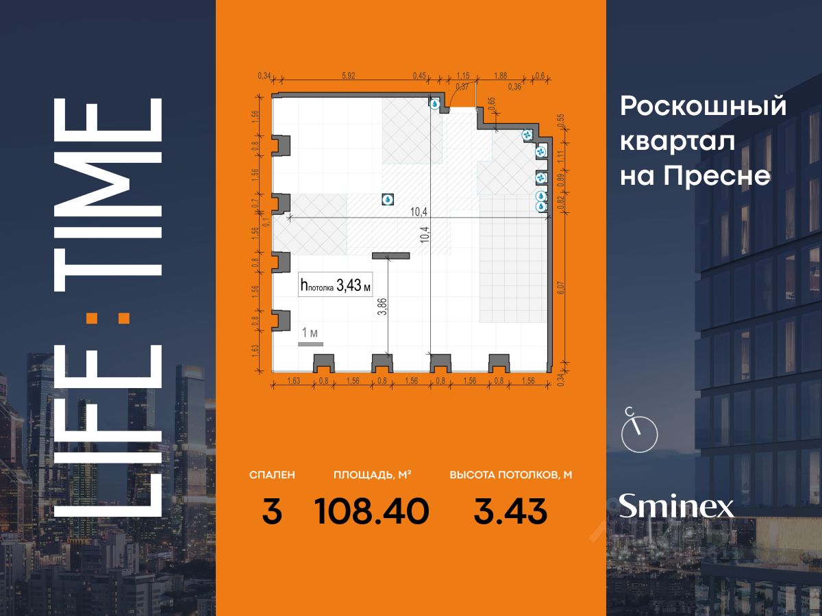 Life Time - роскошный современный квартал на Пресне, в наиболее быстро растущем премиальном районе ЦАО. Его насыщенная инфраструктура и выгодное расположение дарят время для жизни. Вы больше не тратите его на дорогу или ожидание, при этом ни в чём себе не отказывая. На территории предусмотрено всё для комфортной жизни: • двор-парк площадью 1,8 гектара с прудом и фонтанами, • Clubhouse - инфраструктурный центр в отдельном здании с исчерпывающими возможностями для спорта, отдыха и досуга только для жителей, • спортивная инфраструктура на улице и в помещении, в том числе бассейн длиной 25 метров, хот-таб, хаммам, сауна, бьюти-зона, • клубная гостиная с террасой, • всё для развития и досуга детей любого возраста, в том числе детский сад и школа. Life Time находится в центре сложившегося премиального района, в окружении многочисленных парков. Удобная транспортная доступность и прямой выезд на Звенигородское шоссе позволяют без проблем добраться до Садового кольца и Москва-Сити. Архитектурный стиль квартала - роскошный минимализм. Дома десятилетиями будут выглядеть современно.
