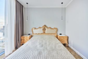 Продается двухкомнатная (евротрешка) видовая квартира в ЖК бизнес-класса ''Headliner''. 40 этажДве большие спальни Великолепный вид из спален на Москва-реку. Высокие потолки 3 метра создают ощущение простора и света.Площадь квартиры 82,5 кв.м.В квартире выполнен роскошный дизайнерский ремонт. Трендовая мебель, модные закругления и освещение не оставит Вас равнодушными. -Просторная кухня-гостиная-Мастер -спальня с гардеробом и санузлом-комната свободного назначения, которая может стать прекрасной детской/ гостевой или кабинетом со своей гардеробной - Гостевой санузел общий Квартира полностью укомплектована, остаётся вся мебель, предметы интерьера и бытовая техника (плита, холодильник, посудомоечная машина, вытяжка, варочная панель, стиральная и сушильная машина, телевизоры, кондиционеры).ШИКАРНАЯ транспортная логистика: -5 минут пешком до метро ''Шелепиха'' и МЦК. - 5 мин. на авто до ТТК. - ПЕШКОМ до Москва-Сити по подземному и наземному переходу - 13 мин. на авто до Садового кольца. В пешей доступности детские сады, школы, детские и спортивные площадки, кафе, частные и городские поликлиники, парки, магазины.Закрытая территория и подземный паркинг.1 собственник, подходит под ипотеку. Звоните!