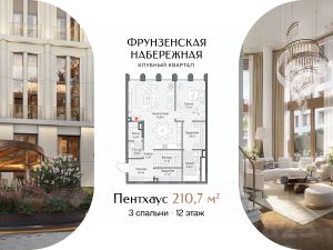 Просторная квартира с тремя мастер-спальнями. Панорамные окна наполняют квартиру светом, а с многочисленных балконов открываются виды на витражный парк с соснами и прудом.Фрунзенская набережная - один из самых желанных районов Москвы, на уровне Остоженки и Патриарших. Новых элитных проектов поблизости нет и не появится: набережная равномерно застроена, а клубный квартал завершает формирование этой локации.Клубный квартал расположен в собственном витражном парке - самом крупном среди элитных проектов Москвы. Его площадь составляет 3,1 гектара - это сопоставимо с территорией 120 теннисных кортов.Вся инфраструктура доступна только жителям. В большом Clubhouse и на территории парка предусмотрено всё для активной и комфортной жизни вне квартиры: двухэтажный фитнес-клуб, многофункциональная спортивная площадка, клубная гостиная и самое большое в элитном классе детское игровое пространство.Клубный квартал ''Фрунзенская набережная'' - приватная и спокойная среда для жизни среди людей со схожими ценностями. Здесь по-настоящему тихо: сталинская архитектура и высокие сосны защищают от городского шума и посторонних взглядов.Девелопер проекта Sminex - лидер на рынке премиальных и элитных домов Москвы. С 2001 года построили более 100 проектов площадью 12 млн м² - покупатели выбирают у нас каждую третью квартиру в этом сегменте.