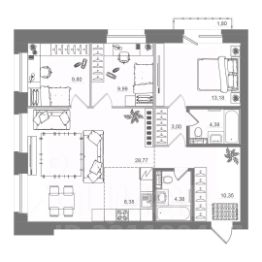 Квартира в квартале-парке комфорт-класса ''Ботаника'' (Кольцово, Новосибирск).Продуманная планировка, большие окна и зелёное окружение создают комфортную атмосферу для жизни.Территория закрыта от машин, есть детские и спортивные площадки, скейт-парк и теннисный корт.Подходит для семей, молодых специалистов и тех, кто ценит тишину, свежий воздух и современный формат загородного комфорта рядом с городом.