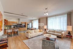 Лот: 97750. В продаже квартира с отделкой в ЖК ''Новопесковский'' в пешей доступности от Смоленской набережной на Арбате.Планировка: просторная гостиная с обеденной зоной и выходом на балкон, мастер-спальня с гардеробной и полноценным санузлом, две спальни с ванными комнатами, кабинет, гостевой санузел.Выполнена отделка с использованием дорогостоящих материалов, квартира меблирована и оборудована бытовой техникой. Предусмотрены полы с подогревом, приточно-вытяжная вентиляция.Окна выходят в тихий Николощеповский переулок.Есть возможность покупки или аренды машино-мест в подземном паркинге.Участник ассоциации агентств элитной недвижимости AREA