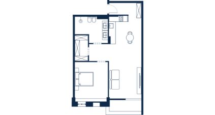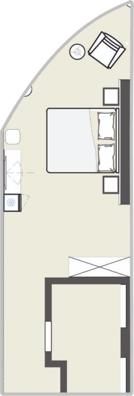 Резиденция с балконом, а также одним санузлом. Из окон открывается вид во внешний двор, на образовательный центр Сириус. Высота потолков составляет 3,1 метра. Отделка под ключ