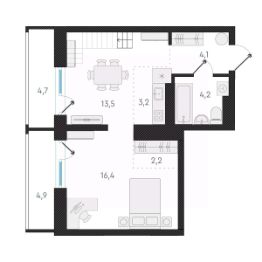 Продаётся 1-комнатная квартира в сданном доме (Дом 2), срок сдачи: IV-кв. 2023, общей площадью 43.2 кв.м., на 3 этаже. При планировке жилых пространств комплекса ''Нормандия-Неман'' базовыми аспектами стали новаторство, рационализм и жизнелюбие. В квартирной типологии целый ряд инновационных планировок. Творчески осмыслена и топография места: этот потенциал красиво реализован в пентхаусных квартирах - в жилищах с панорманым видом и буквально общегородским обзором. Отсюда будет виден и центр Новосибирска, и зеленое приволье Заельцовского бора, и переливчатая гладь Оби.