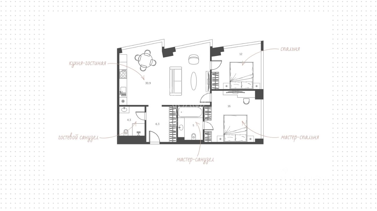 84 м² · Этаж 30 из 79