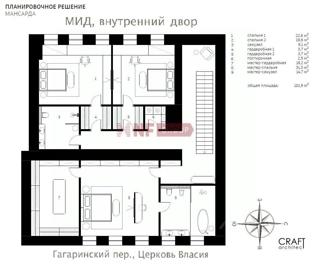 Лот: 80548. Эксклюзив NF GROUP. Здание реконструировано в 2007 году, был воссоздан первоначальный облик фасада, построенного в начале ХХ века в традициях старомосковского стиля. В продаже пентхаус в клубном особняке ''Власьевская слобода'' в Хамовниках. Пространство квартиры оптимально для большой семьи возможно организовать просторную гостиную, отдельную кухню, шесть уютных спален, три-четыре ванные комнаты, гардеробные. Высота потолка на 1 уровне 3,5 м, на 2 уровне (мансарде) от 2 до 3,5 м. Установлены трехкамерные стеклопакеты. Приятные виды в сторону МИД, церковь Власия в Гагаринском переулке. За квартирой закреплено машино-место на наземной парковке во дворе за шлагбаумом. Квартира расположена в историческом клубном доме в Гагаринском переулке. Красивая входная группа, лифтовые холлы, кованные лестничные перила. В особняке установлены современные инженерные системы, круглосуточное видеонаблюдение и охрана. Здравствуйте, я Ирина Воробьёва, брокер международной консалтинговой компании NF GROUP. Подробно расскажу об этой квартире и районе, оперативно организую просмотр и согласую лучшие условия. Участник ассоциации агентств элитной недвижимости AREA