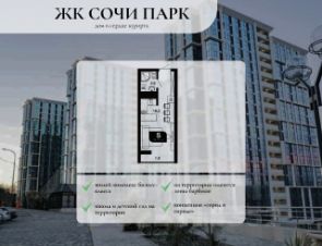 Жилой комплекс ''Южный парк'' , сочетает в себе одновременно комфорт жизни рядом с центром города, и возможность отдохнуть от городской суеты, не покидая пределы комплекса. Жилой комплекс бизнес-класса в легендарной локации — это комфорт и преимущества жизни в центре города. Новостройка располагается в Центральном районе, в 10 минутах от делового центра Сочи.''Южный парк'' включает в себя— 4 здания,— Зелёная территория,— Территорию с ландшафтным дизайном,— Отдельную зону clubhouse с зоной ресепшн,— 4 спортивные площадки,— 2 детские площадки,— Открытую площадку для отдыха взрослых и их гостей,— Парковки.Всё, что делает жизнь насыщенной и комфортной!